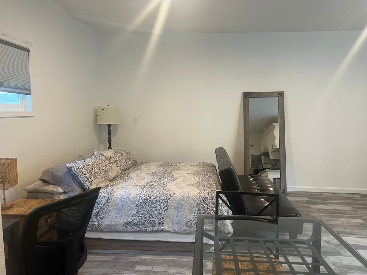 Esta es una unidad trasera recién remodelada de una casa unifamiliar. Tiene un dormitorio tamaño queen, un bonito comedor/sala de descanso con TV inteligente (sin canales locales), freidora de aire, nevera, utensilios básicos de café y lavandería gratuita. - A 3 minutos en coche de la estación de Bayfair BART. - A 15 minutos en coche del aeropuerto de Oakland - 25 minutos en coche a San Francisco - A minutos de la autopista 880, 238 y 580 - A pocos minutos a pie de Walmart, Starbucks, tienda de comestibles, restaurantes y mucho más. Nuestro alojamiento es perfecto para 1-2 huéspedes que desean una estancia privada y relajante.