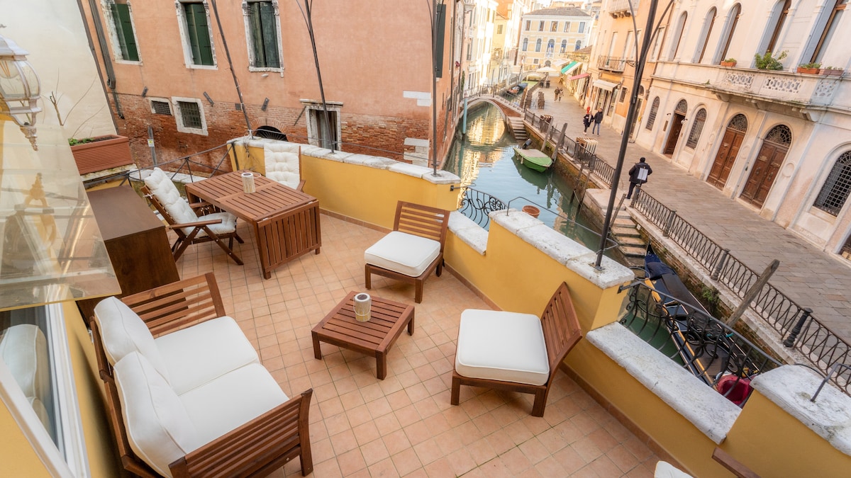 Cozy up with a book, have breakfast and dinner while admiring the incredible view of the bell towers and canals of Venice, live like a true Venetian in the most typical district of Venice a few steps from the Rialto bridge, Ca' D'oro and San Marco in a apartment finished with furniture and ornaments made by Venetian and Murano artisans. You will feel like you are experiencing the fantastic atmosphere of the 1800s but with all the comforts of a modern apartment. Don't miss this amazing experience