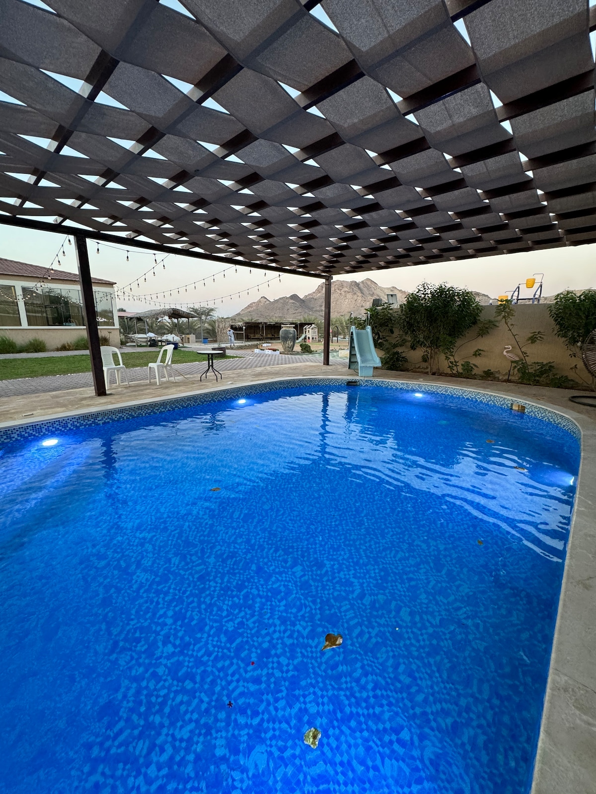 Disfruta de una estancia en una granja lujosa y relajante en Ras Al Khaimah. Alójate en espacios cómodos rodeados de naturaleza, disfruta de productos frescos y disfruta de la tranquila campiña. Es un gran lugar para una escapada tranquila, pasar tiempo en familia o organizar reuniones y celebraciones de fin de año. Ya sea que estés aquí para relajarte o celebrar, nuestra granja ofrece un entorno acogedor y natural para que tu visita sea especial.