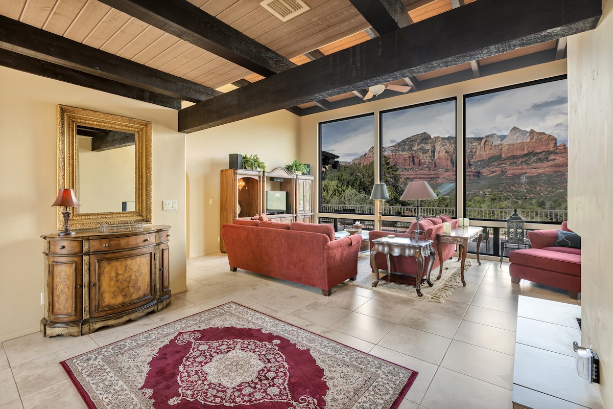 Ubicado en medio de los árboles en Sandia Park. El diseño refrescantemente abierto y las ventanas del suelo al techo ofrecen una relación serena con el aire libre. La sala de estar alberga una gran variedad de muebles contemporáneos alrededor de una estufa de pellets. La cocina está totalmente iluminada durante el día por las ventanas envolventes. La casa contemporánea creada ofrece unas vistas impresionantes de la cordillera cercana. A solo 35 minutos de la fiesta del globo. Visita la fiesta del globo durante el día y disfruta de Skyline Glass House por la noche.
