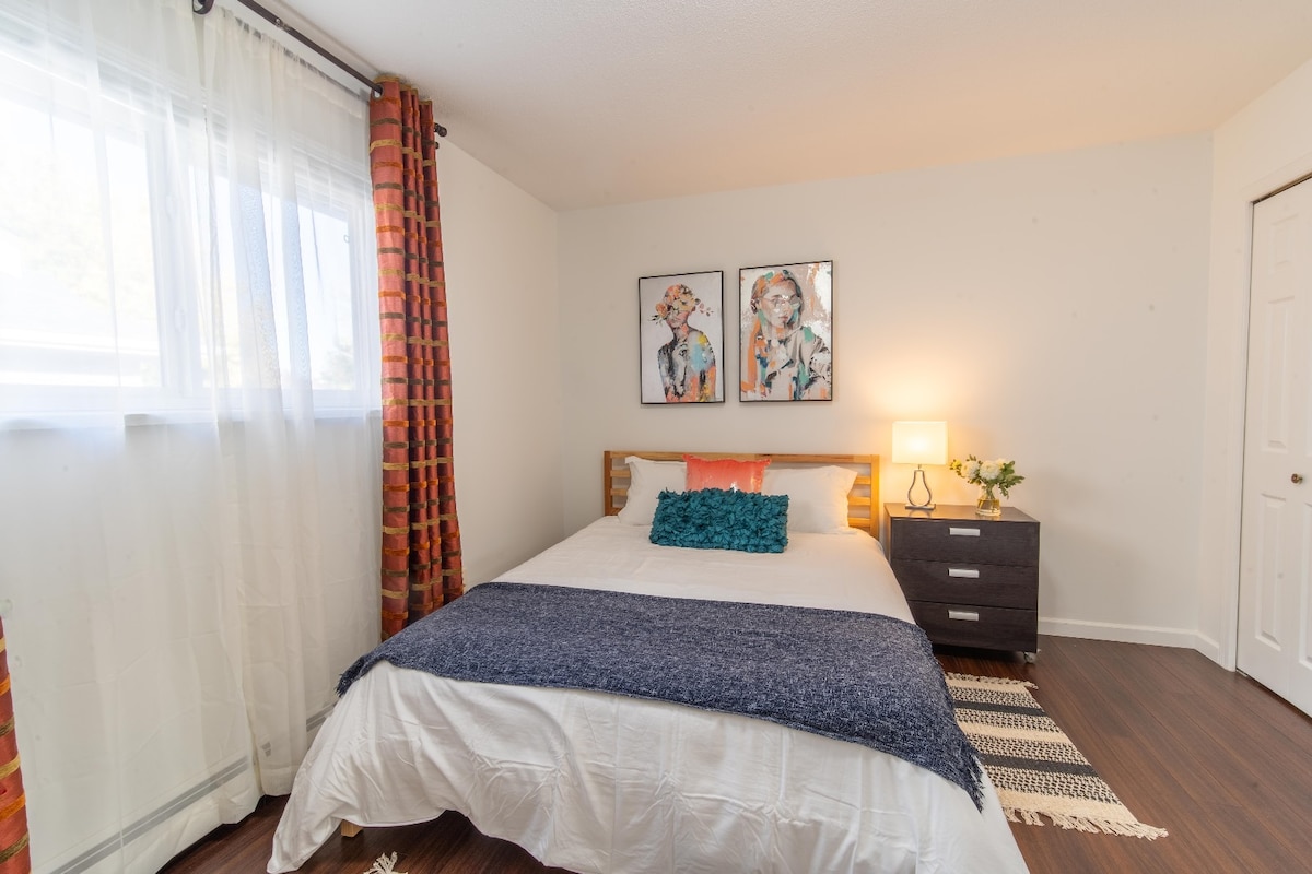 Amplio dormitorio con cama tamaño queen | Baño compartido YVR, aparcamiento