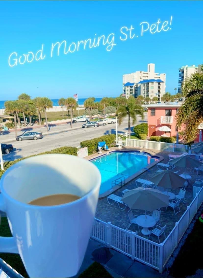 Charming, cozy, well-appointed/fully stocked ground floor 1 Bedroom Unit with its own Private Entrance, Courtyard & spacious heated Pool. A short 1 minute walk to either St. Pete's Gulf side Upham Beach or all the abundant Nightlife & Restaurants on Gulf Blvd. Free WiFi(Spectrum) & 2 separate 32" HD TV's (Living Room sofa bed & Bedroom Queen bed), have all Premium movie, news, & sports channels. This Unit is affordably priced for the Budget Conscious desiring that Premium Beach Location.