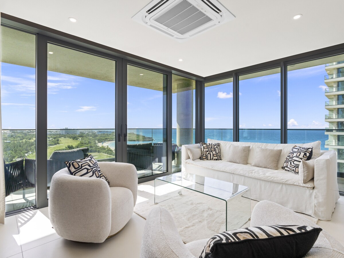 Elegante y espacioso apartamento ubicado en un barrio tranquilo. Esta unidad ofrece amplias vistas al océano Atlántico, un balcón envolvente, una cocina moderna con barra de desayuno, una cómoda sala de estar, TV con acceso a Netflix, un comedor con capacidad para 6 personas, amplios dormitorios y baños, aparcamiento privado gratuito y una hermosa piscina infinita. Es ideal tanto para parejas como para familias. TENEMOS UN GENERADOR DE RESPALDO que mantiene la energía encendida todo el tiempo.