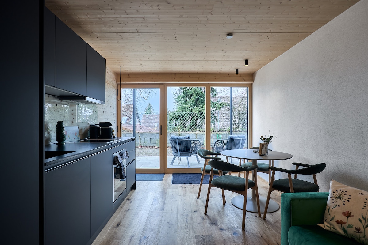 El apartamento boutique, luminoso, moderno y soleado, está situado en una zona tranquila y verde. Hay una terraza, una zona de fogatas y un parque infantil. Varias vistas, la naturaleza y el lago de Constanza te invitan a descubrir y relajarte. El apartamento es ideal para parejas y familias. El transporte público (parada de autobús, estación de tren) está en las inmediaciones y se puede llegar al lago Constanza en 5 minutos en coche. Comprar verduras frescas de temporada de nuestra propia granja.