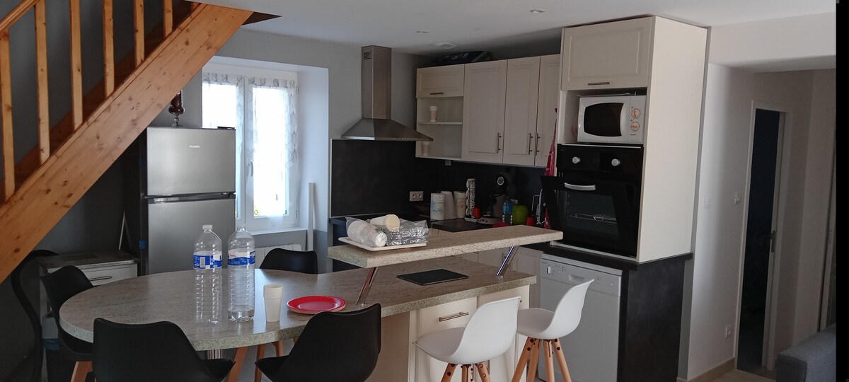 Jolie maison au coeur de la Corrèze totalement clôturée avec grand parc de 2000 M2 ,facile d'accès par une sortie d'autoroute A20. La maison est très bien équipée : grand salon avec TV , espace jeux pour enfants, espace lecture. Cuisine tout équipée. Cellier avec congélateur, lave linge, chaise haute , poussette. Grande chambre avec dressing, lit parapluie. Salle de bain douche a l'italienne, double vasque sèche cheveux et nombreux rangements. Les draps et serviettes sont fournis .