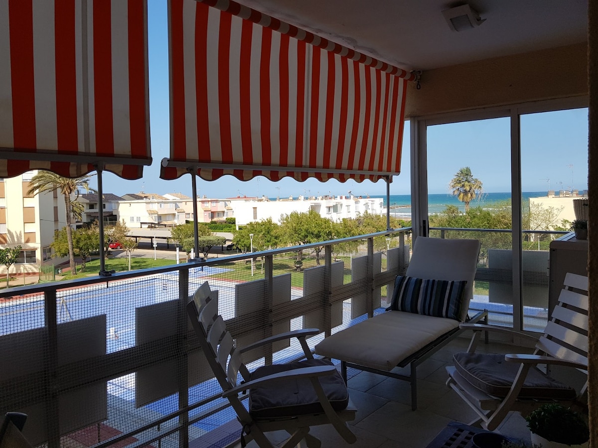 AT-47879-V. Apartamento en primera línea de playa compuesto de 3 dormitorios, baño, aseo y amplia terraza con vistas al mar. A 10 minutos en coche de conexión con el metro. Los clientes disfrutarán además de los servicios de la vivienda (internet 300Mb, A.A. Centralizado y Ascensor) de las amplias zonas comunes dotadas de una amplia piscina, pistas deportivas, zonas infantiles y de restauración. A 15 minutos en coche del centro de Valencia La piscina esta abierta los meses junio (día 14) a sep.