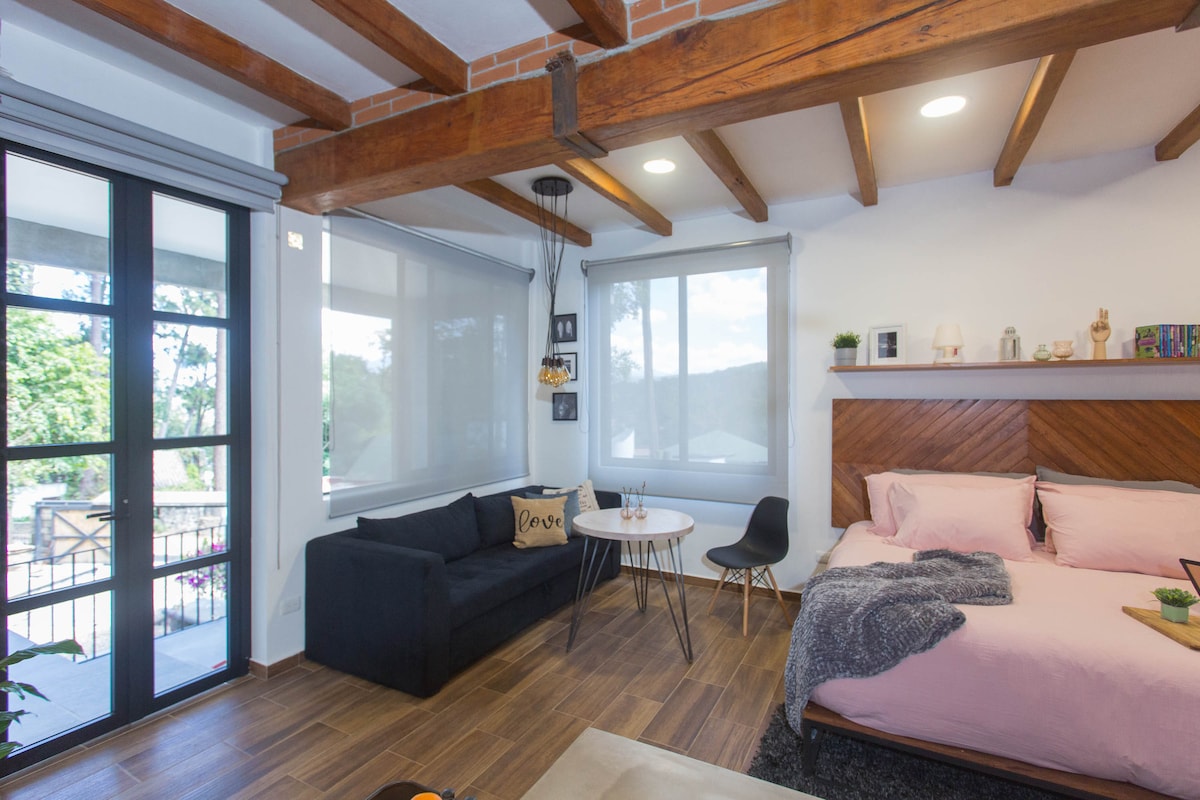 Moderno y equipado departamento tipo loft en condominio con amenidades. Perfecto para una estancia en pareja. Hermosa vista al bosque y a tan solo unos minutos del corazón de Avándaro. Además de disfrutar de la comodidad de este bonito departamento con wifi, podrás tener acceso a amenidades como alberca y jacuzzi climatizados, Fogatero y 2 áreas de palapa con asador para una rica parrillada.