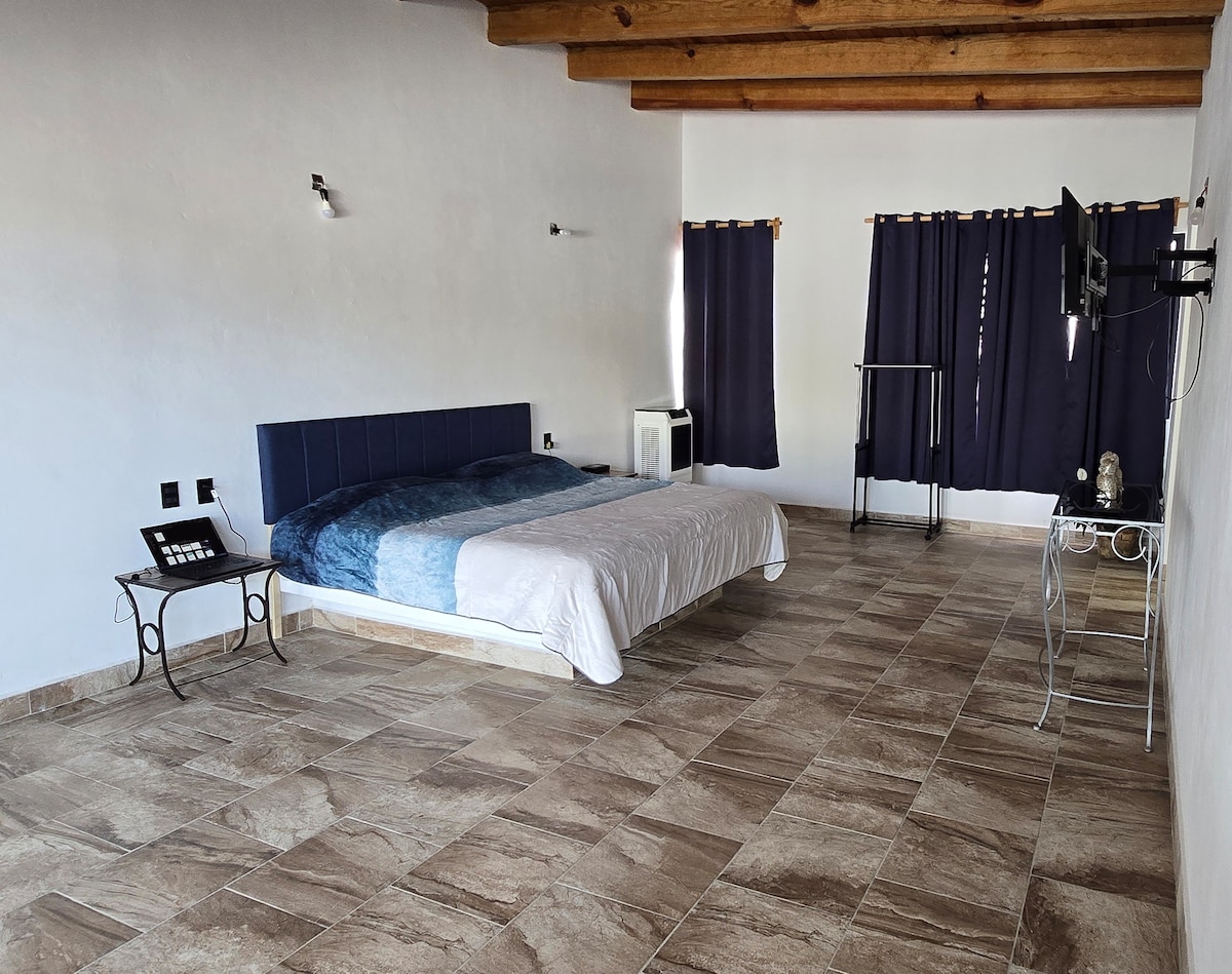Departamento amplio con acabados rústicos. Disfruta de una espaciosa habitación, cama king size, baño con tina de hidromasaje, la cocina con estufa, microondas, asador... Terraza al aire libre, internet exclusivo, pet friendly. A solo 15 min del centro del pueblo, a 100 metros de la autopista. Con estacionamiento. Ideal para familia pequeña, parejas… si se busca una escapada tranquila lejos del bullicio y ajetreo de la ciudad es perfecto para descansar, y llegar aventurarse en Valle de Bravo.