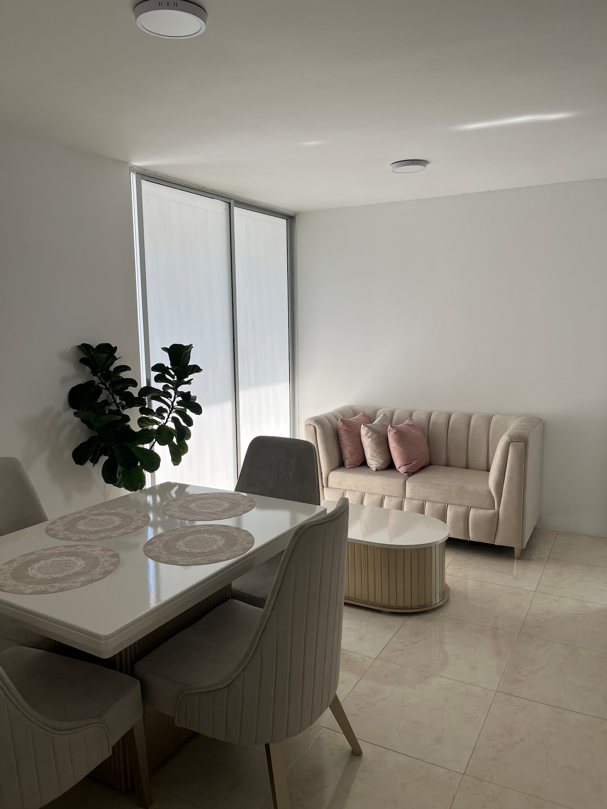 Amplio y moderno apartamento, ubicado en el barrio residencial el Novalito, estrato 6. Cerca de los mejores restaurantes, bares y parque el novalito. A 5 minutos de centro histórico y plaza Alfonso López. Aire acondicionado en sala y cuartos, dos parqueaderos. Hermosa vista a la sierra nevada de Santa Marta.