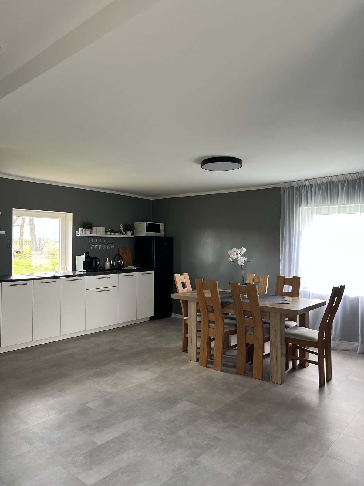Olvídate de las preocupaciones en este gran alojamiento: ¡es un oasis de tranquilidad! Este es el lugar ideal si quieres disfrutar de la naturaleza y pasar un tiempo tranquilo. Casa muy bonita con sauna, terraza y chimenea en la campiña letona entre estanques donde se puede nadar. Dos dormitorios, sala de estar con chimenea, cocina pequeña, baño, aseo, sauna y sala de juegos. Por un cargo adicional, también es posible utilizar el baño (sauna) en la casa.