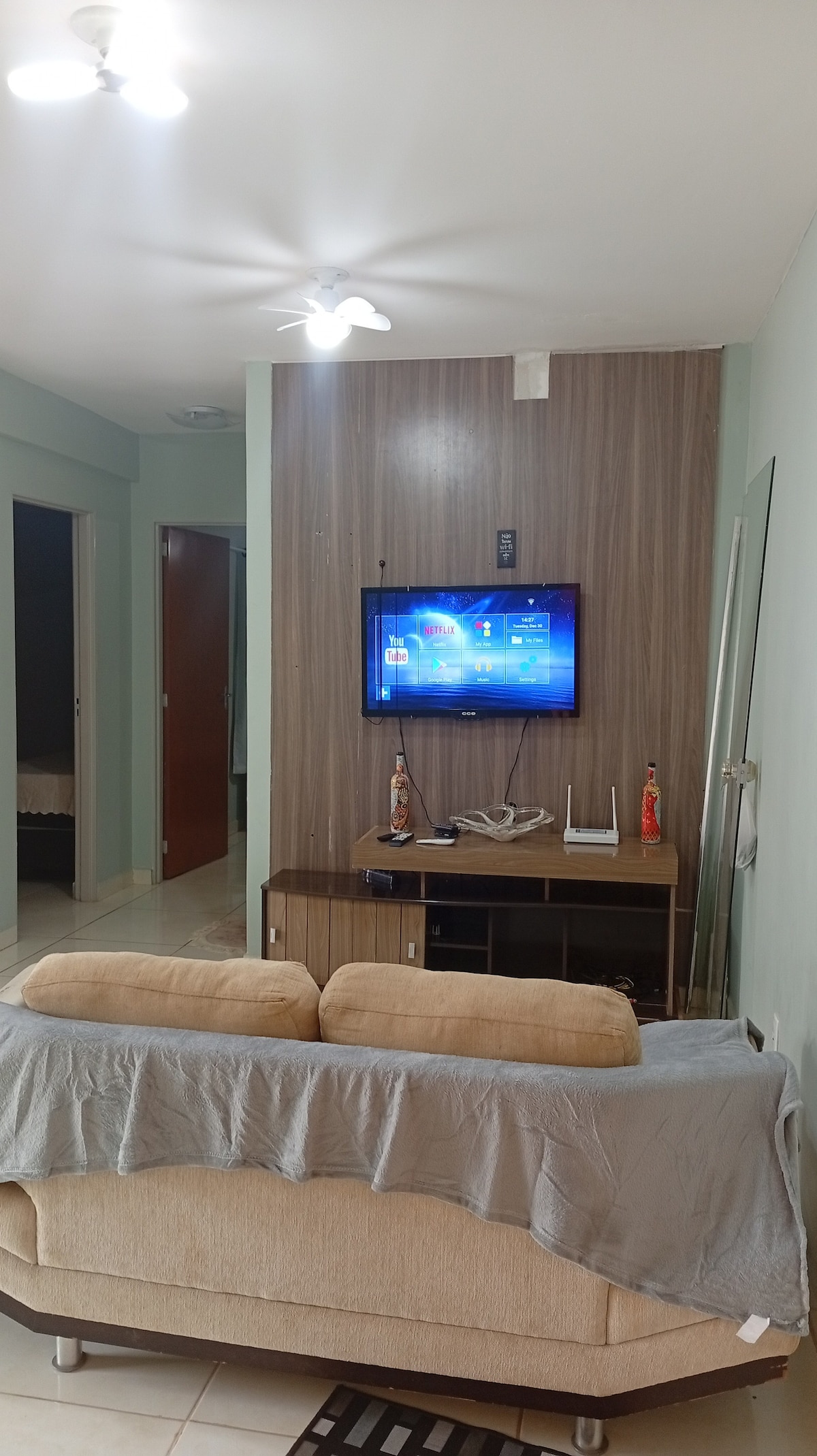 Ambiente sencillo pero acogedor, adecuado para personas sencillas pero que disfrutan de un entorno tranquilo y seguro Apartamento 02 dormitorios, 01 en suite con cama doble + 01 dormitorio con cama individual + cama auxiliar. Ambiente muy seguro y controlado, el check-in y la estancia suelen ser autónomos (sin la presencia del anfitrión). Nuestro televisor no es INTELIGENTE, pero está disponible para CHROMECAST, tenemos conexión a internet wifi. Si todo está bien, siempre evaluaremos 05 estrellas y también contaremos con esta evaluación.