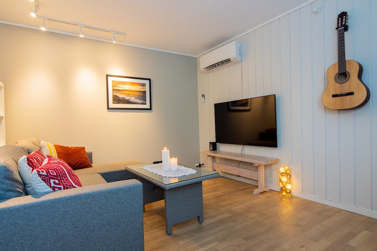 Acerca del apartamento: El apartamento tiene 1 dormitorio con 2 camas. Sala de estar con sofá cama doble y bomba de calor. Baño con cabina de ducha. Microondas y nevera con congelador. Ubicación: ubicación céntrica en Vågen. A 7 minutos a pie del centro de la ciudad y la terminal de autobuses, cerca de Kulturfabrikken, Kranaskjæret, museo Mellomverftet, etc. A 250 metros de la tienda de comestibles más cercana y de la parada de autobús. A poca distancia a pie de Badeland y Braatthallen. Aparcamiento: Aparcamiento gratuito en la calle o en el aparcamiento a 250 metros.
