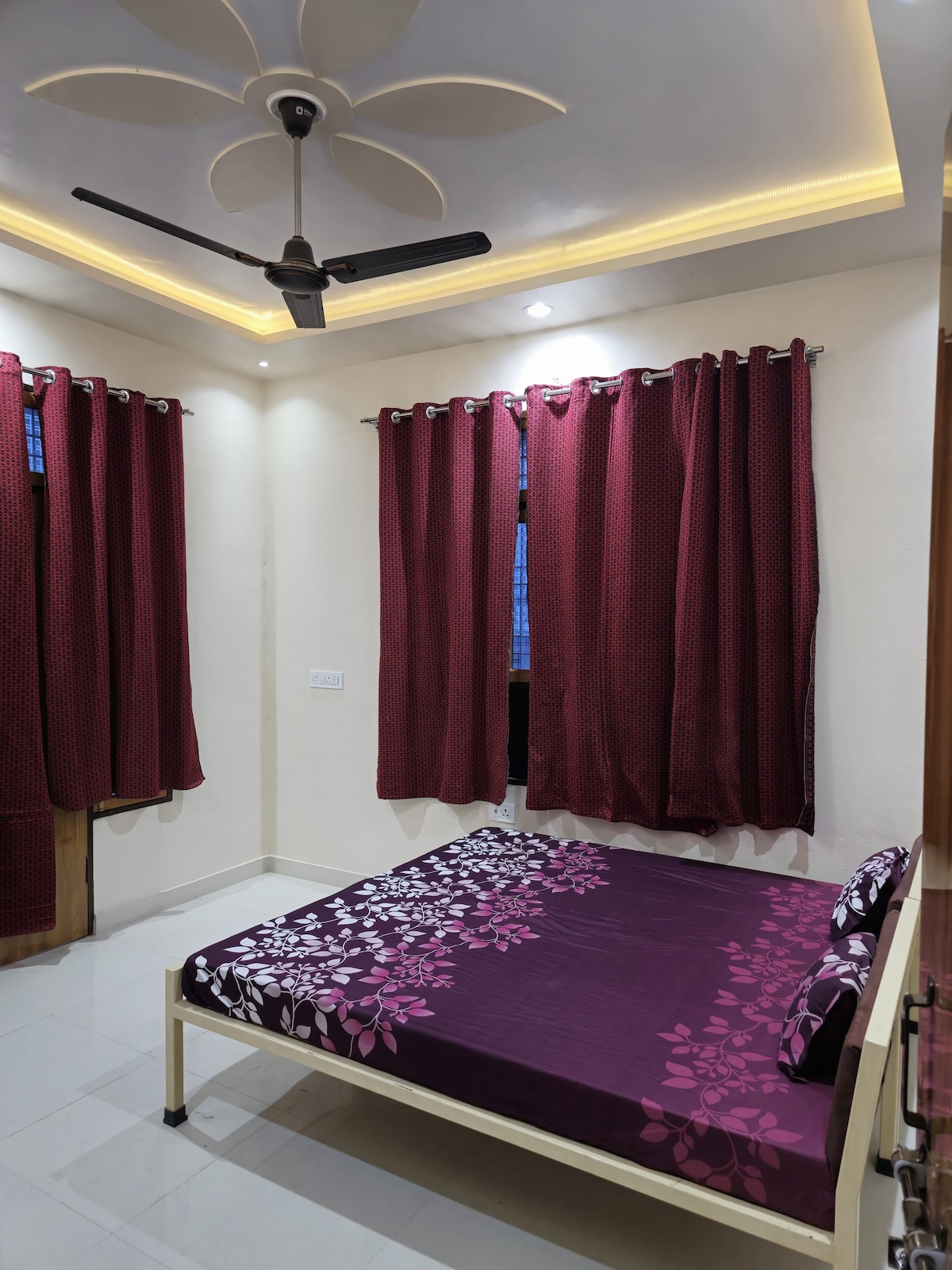 Ground-floor AC suite in a calm residential area of Kamachha, Varanasi. Includes two king 6×6 beds, a private bathroom with hot water, and a private basic kitchen with induction and utensils. Wi-Fi, projector, filtered water, inverter backup, and roadside parking available. Kashi Vishwanath (3.5–4 km), Assi Ghat (2.5–3 km), and BHU (3.5 km) are best reached by auto or scooter. Ideal for families or small groups seeking a peaceful homestay.