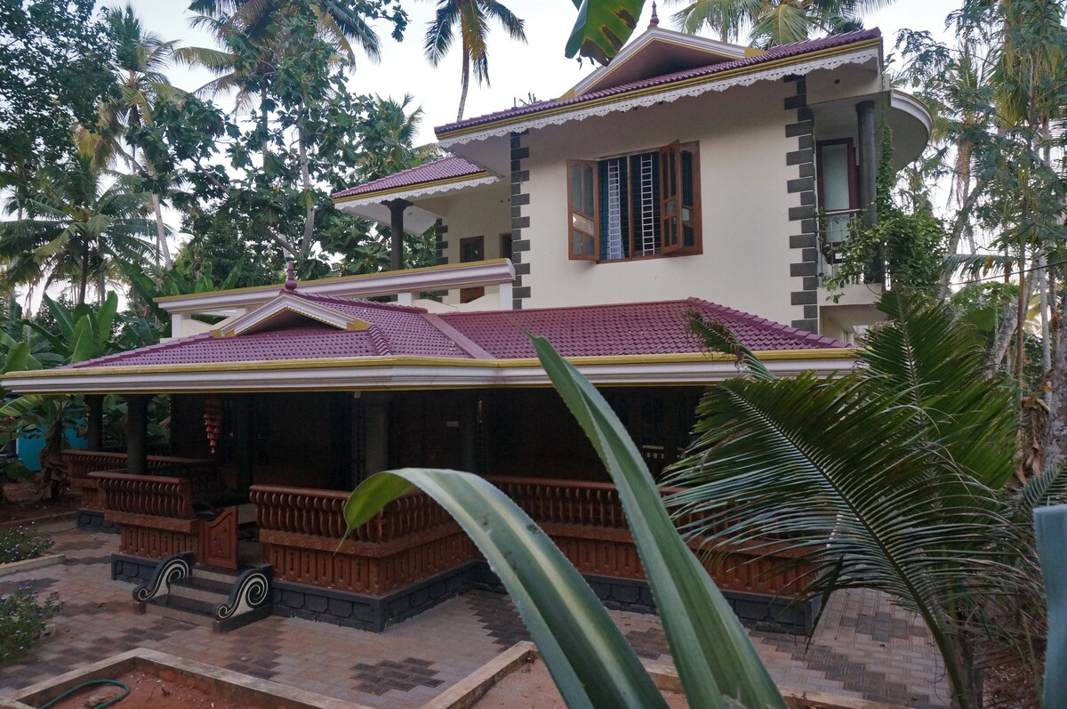 Preciosa casa de huéspedes pequeña en un pequeño pueblo de Varkala. Lugar muy tranquilo y apacible, rodeado de naturaleza y a 2 minutos caminando desde una hermosa y virgen playa de Aaliyirak. Hay cuatro habitaciones amplias y cómodas. Cada habitación está diseñada para dar a los huéspedes total privacidad. La cocina, el comedor y la sala de estar están disponibles para todos los huéspedes. El precio base es por habitación, 2 huéspedes, si eres más, envíanos un mensaje para consultar los precios.