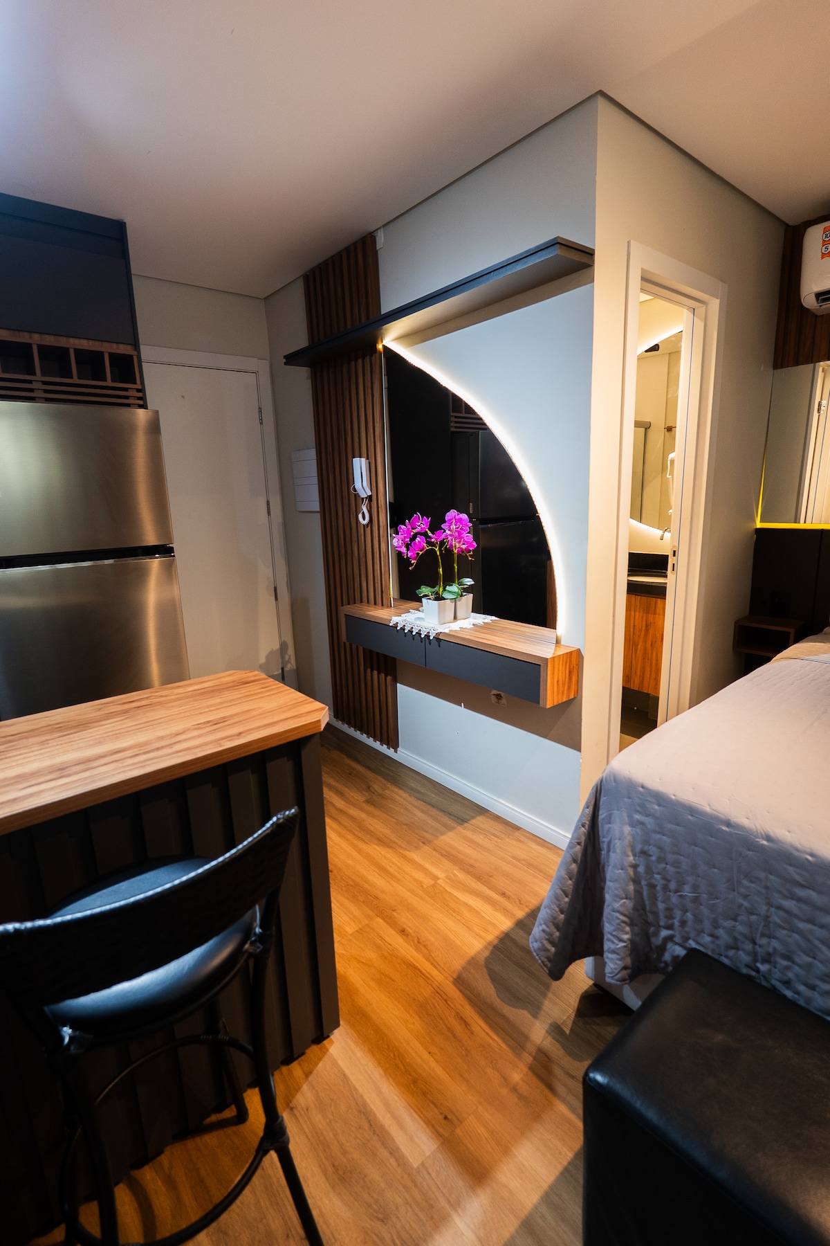 Si buscas practicidad, comodidad y buena ubicación, este kitnet es perfecto para ti. Tiene capacidad para 4 personas, con aire acondicionado, wifi, TV y cocina equipada con todos los utensilios. A pocos minutos del aeropuerto de Várzea Grande, y con fácil acceso al centro de Cuiabá y Várzea Grande, es ideal para viajeros de negocios, parejas o estudiantes que pasan por la región.