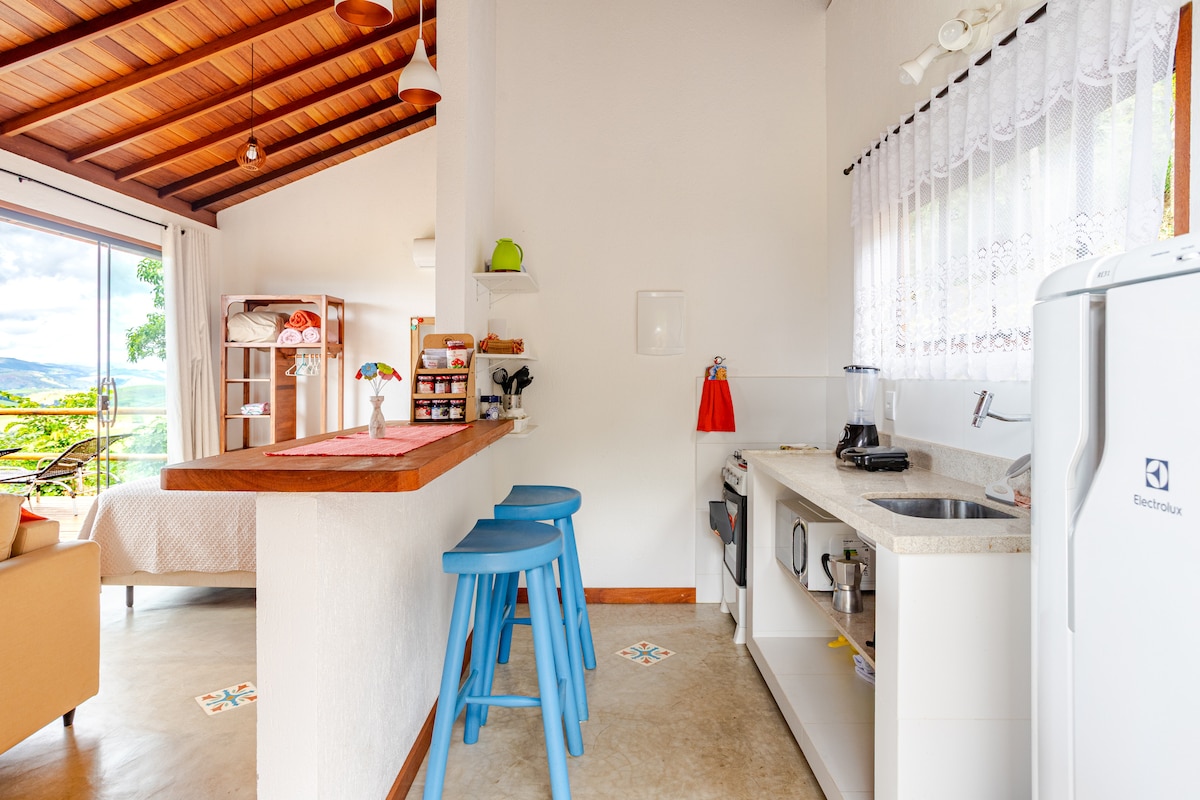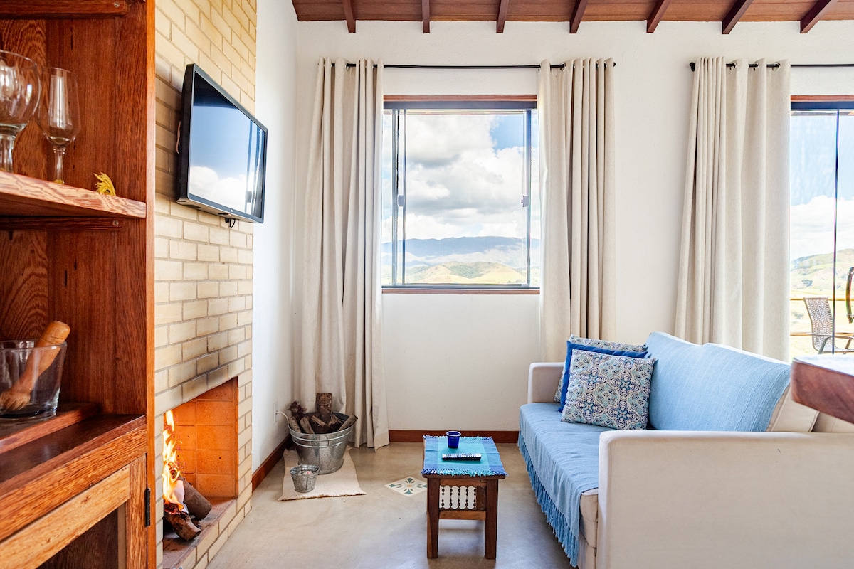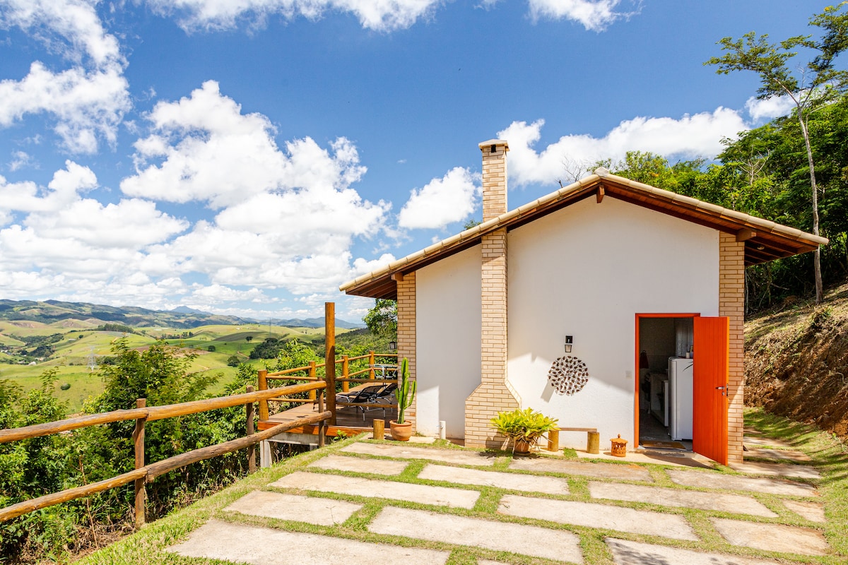 Relájese en este espacio tranquilo y elegante. Nuestro chalet ofrece todas las comodidades de un hogar, cocina completa, chimenea y una terraza con una maravillosa vista de las montañas, por razones de seguridad no aceptamos niños. Ubicación privilegiada, entre Vale das Videiras y Paty de Alferes. Disfrute de senderos, cascadas y actividades en bicicleta.