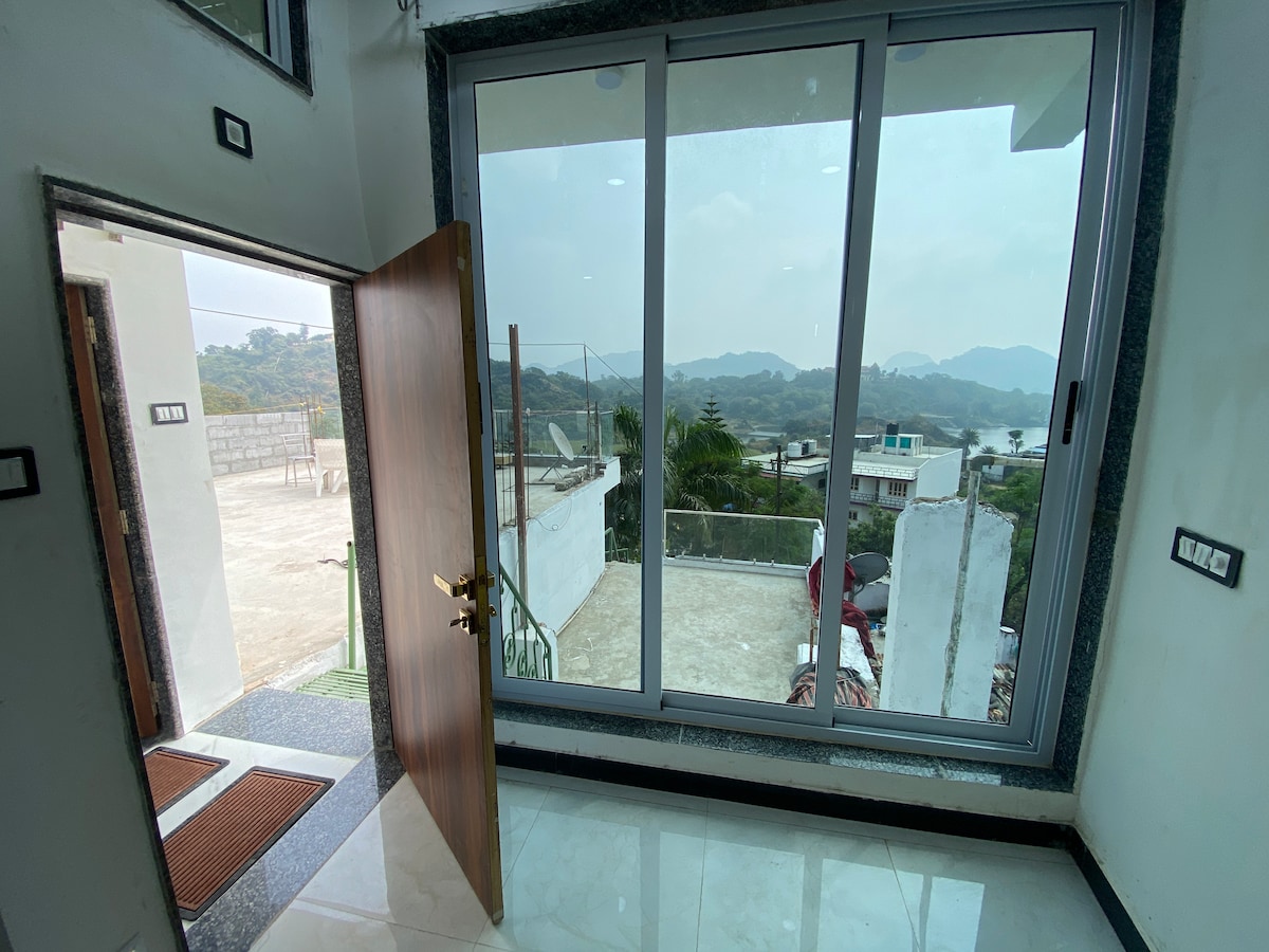 ★ RTDC Registered homestay ★ Hi🙋🏼, This is a 2BHK apartment perfect for a family or couples. Located at a hill-cliff ⛰️ hardly 1.5km away from Nakki-lake This place offers: - Private kitchen with basic cutlery, Induction, aquaguard 🧑🏻🍳 - Sunset facing private balcony🌄 - Spacious terrace with instaworthy landscape views 🎑 Come say Hi to Kiwi (golden retriever)🐶 We rent out outdoor tents if you plan to sleep on rooftop🏕️🌠🌄