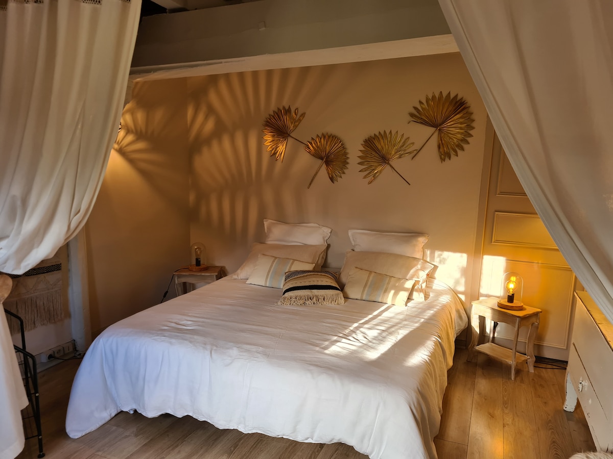 Muy bonito apartamento en el segundo piso de una casa burguesa del siglo XIX, en el corazón de un parque centenario, recomendado por Le Petit Futé. Un enclave encantado en el centro de la ciudad, a menos de 5 minutos a pie de la estación de tren y del centro turístico. Las 2 habitaciones, muy amplias, tienen cada una una cama de 160x200 y un escritorio. Un amplio sofá ofrece la quinta cama. Una cocina totalmente equipada, abierta al salón, le ofrece un espacio ideal para disfrutar del copioso desayuno.