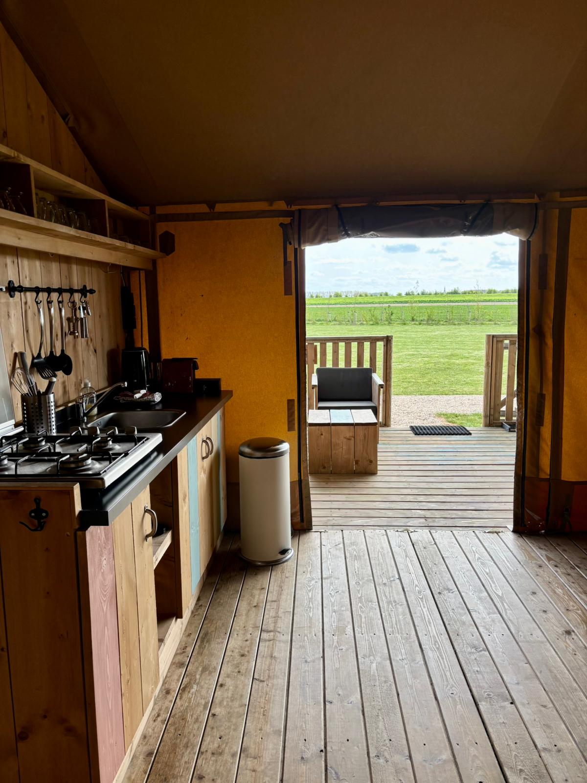 Ontsnap aan de dagelijkse sleur en boek nu onze luxueuze safaritent! De safaritent heeft 1 tweepersoonsbed, een stapelbed en een bedstee, een volledig uitgeruste keuken, een eethoek en een badkamer met regendouche. Een overdekt terras, met zicht op de polder. De tent is net geplaatst, er ligt nog geen mooi grasveld. Daarom bieden wij de tent aan voor een tarief van € 115 in plaats van € 125 per nacht. Mogelijkheid tot bijboeken van een HOTTUB!.