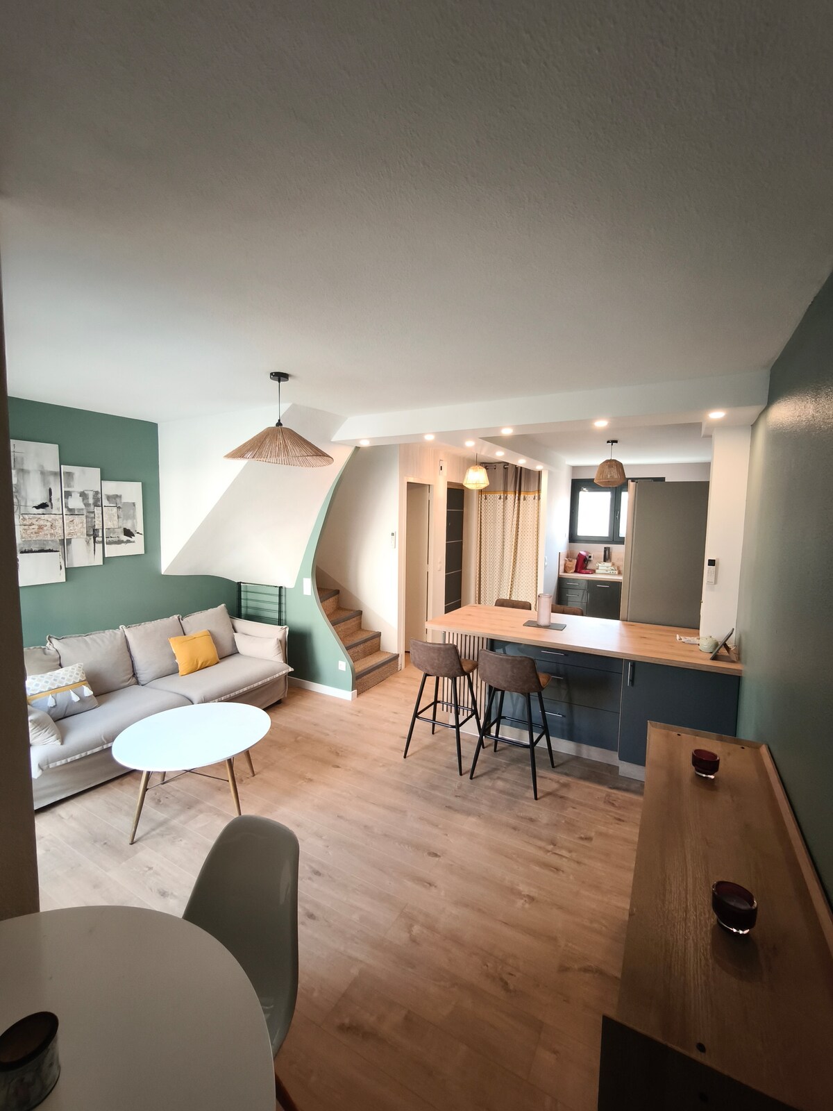 T2 en dúplex independiente, adyacente a nuestra casa principal, totalmente renovado y totalmente equipado: wifi, aire acondicionado reversible (calefacción), lavavajillas, lavadora, TV. Sala de estar luminosa con cocina equipada y baño espacioso. En la planta superior: acogedora habitación con cama doble (160x200) y espacio de almacenamiento. Pequeño jardín, plaza de aparcamiento segura. La estación de tren está a solo 10 minutos a pie, el alojamiento está cerca de todos los servicios. Esperamos poder darle la bienvenida pronto.