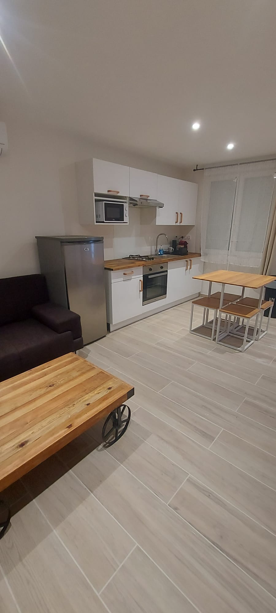 Bonito apartamento de 35 m2 totalmente renovado en el 1er piso de una casa. Está equipado con aire acondicionado y wifi. El apartamento tiene capacidad para 4 personas y un bebé. Se proporcionan sábanas y toallas, así como gel de ducha y champú. Hay una habitación con una cama doble y una cuna para un bebé y un sofá cama en la sala de estar. La habitación cuenta con una zona de escritorio. Atención, no se aceptan animales. Aparcamiento gratuito situado a 80 metros a pie.