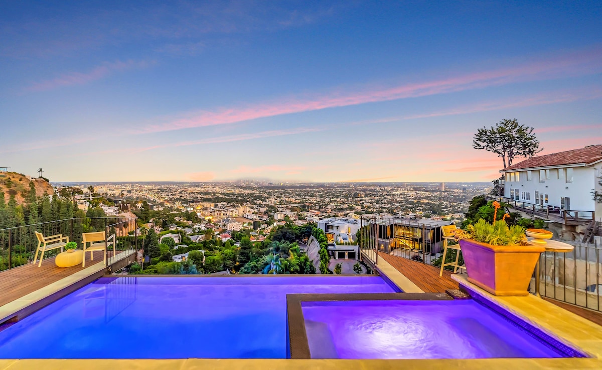 Enjoy a stylish experience at this centrally-located place. Unwind in your private luxury oasis in the hills above Sunset Blvd. This incredible home has an energy of tranquility, and yet is minutes away from the best restaurants, shopping, and nightlife in LA. Enjoy the unobstructed LA city views from your hillside perch, and relax in your private zen backyard with swimming pool, hot tub, waterfall and grass labyrinth.