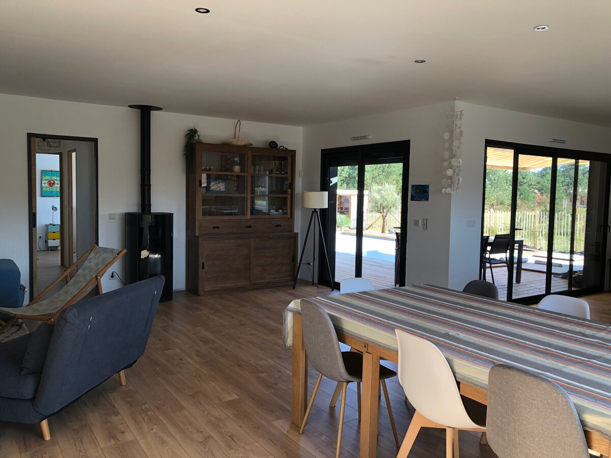 A 1 km del mar, villa de 120 m² de madera respetando la naturaleza. Consta de una gran sala de estar de 60 m² con cocina equipada. Una suite principal con su baño. Una zona de noche con 3 dormitorios y un segundo cuarto de baño con bañera. Una terraza de 80 M2 que incluye una zona de comedor, una zona de tumbonas y muebles de jardín tranquilos. Una PISCINA CLIMATIZADA (accesible desde mediados de mayo hasta finales de septiembre) y SEGURA de 4 m/8 m, filtración con sal. Un jardín con zona de tobogán y columpios. Préstamo de bicicletas