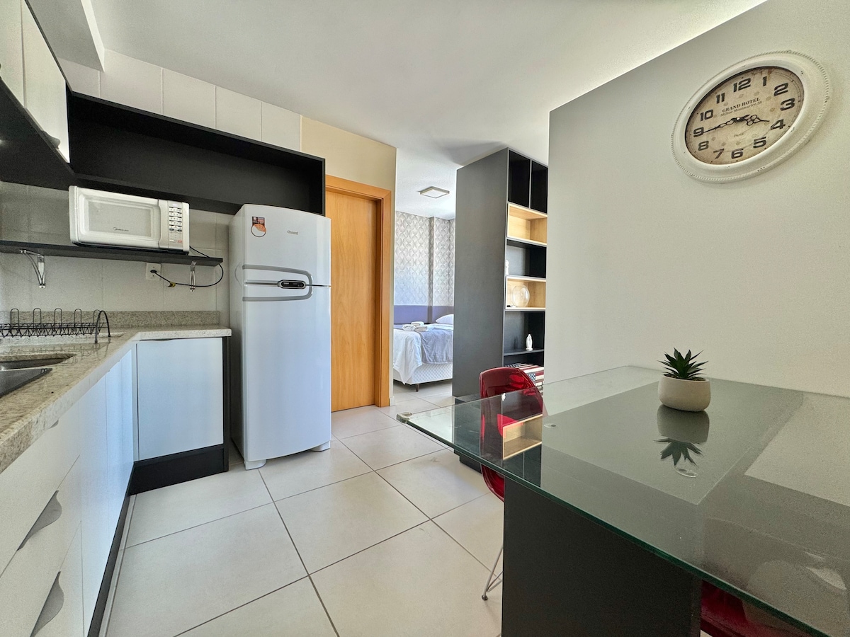Aconchegante JK central no 2º andar, com muita luz natural e ambiente silencioso. _ Próximo a comércios, restaurantes e serviços — ideal para curtas ou longas estadias. _ Cozinha equipada com geladeira, micro-ondas e utensílios, mesa para duas pessoas. _ Sala com sofá, TV e Wi-Fi. Cama de casal, guarda-roupas e banheiro amplo. _ Ar-condicionado, elevador e vaga de garagem coberta para carros de médio porte.