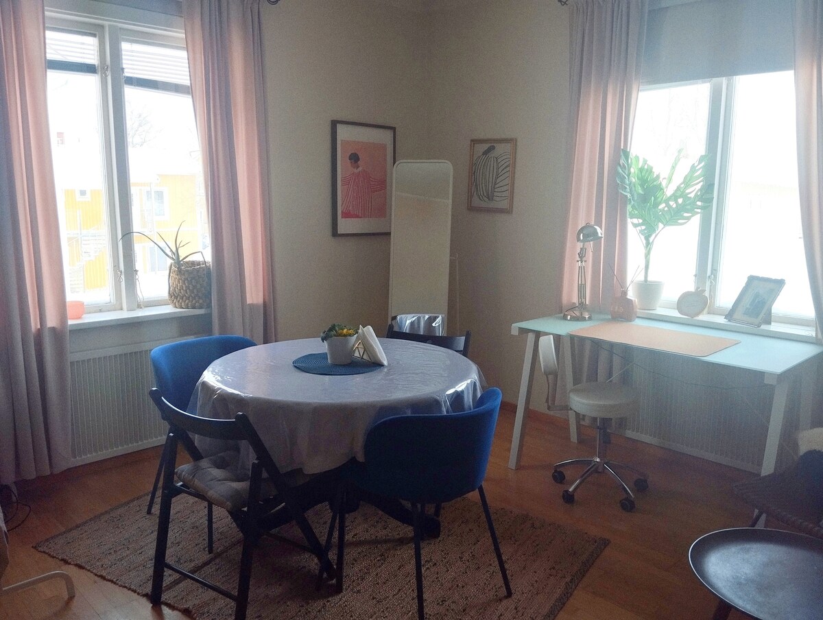 Alquile este bonito apartamento de una habitación en el barrio de Övre Haga. El apartamento está situado en una zona tranquila y agradable, a poca distancia del centro de la ciudad, la universidad y el NUS. Está muy cerca de la naturaleza y de las zonas recreativas I20 y Gammlia. En la zona hay tiendas de comestibles y restaurantes. El alojamiento es adecuado para huéspedes tranquilos y educados. Descuento por estancias largas.
