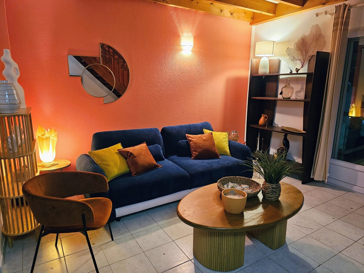 Appartement rez-de-chaussée de 35m2 avec jardinet donnant accès direct à la plage: le rêve! Il a été entièrement refait à neuf en 2022 avec toutes commodités (FreeBox, Smart TV, enceinte Wifi, Nespresso, wc séparé, literie de qualité, etc.) et la volonté que vous vous y sentiez « comme chez vous ». Agréable et lumineux, avec une décoration épurée, il est parfait pour un séjour en amoureux ou en famille. Depuis le jardin, équipé d’un barbecue, vous êtes face à la Grande Bleue…
