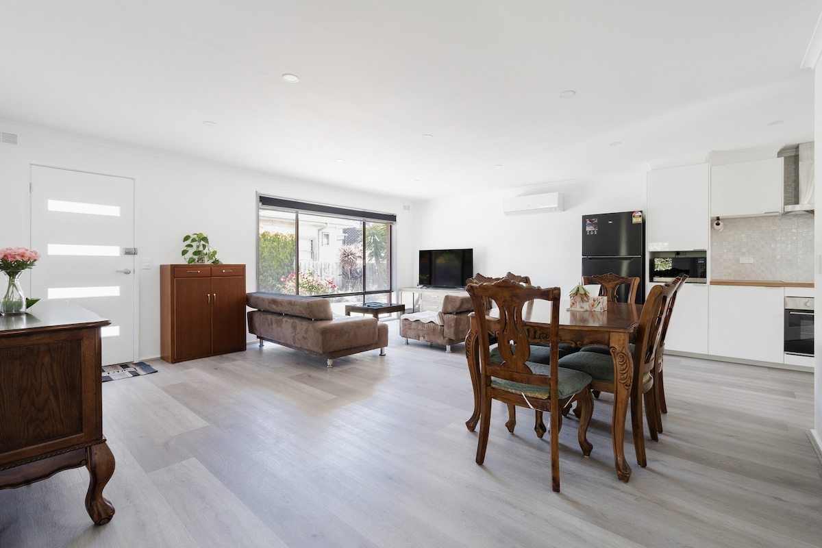 Un refugio privado y tranquilo, ubicado en el corazón de Frankston. Bungalow independiente, recién construido en un barrio tranquilo. A 10 minutos a pie del centro comercial Frankston Bayside, la estación de tren y los autobuses. A 15 minutos a pie de la playa. No se requiere automóvil, pero hay estacionamiento disponible en el lugar. A 150 metros del hospital Frankston, a poca distancia a pie de Monash, conveniente para todo.