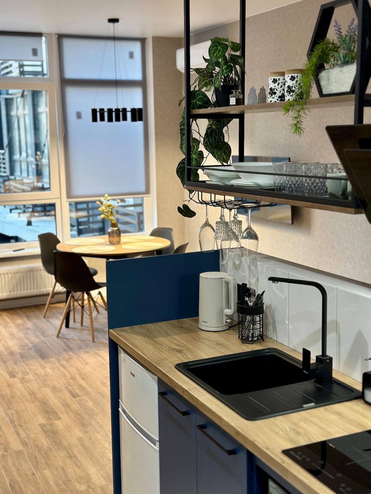 Un elegante apartamento en el centro, diseñado en estilo escandinavo con muebles vintage y arte moderno. Se encuentra a 15 minutos a pie de la playa y a 10 minutos del parque central, rodeado de muchos restaurantes y bares. Un edificio prerrevolucionario con un acogedor patio de Odessa. El apartamento cuenta con un dormitorio separado con cama de matrimonio y un cómodo sofá cama en el salón. El apartamento está totalmente equipado con todo lo necesario.