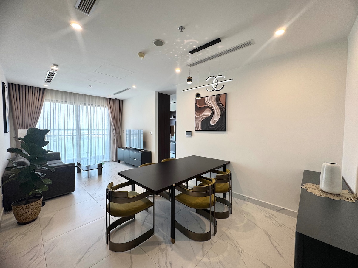 Los lujosos y sofisticados apartamentos de diseño pueden ofrecer a los clientes una experiencia de vida perfecta con servicios públicos y características de alta gama. Incluye: Premium: Sistema de aire acondicionado, sistema de seguridad 24/7 y cerradura magnética. Impresionantes vistas del río Amplio espacio: el departamento tiene una amplia sala de estar con 2 dormitorios, 2 baños, 1 sala de estar, cocina con utensilios de cocina completos. Estos crean una gran experiencia de vida con libertad, privacidad y servicios de primera calidad para nuestros huéspedes.
