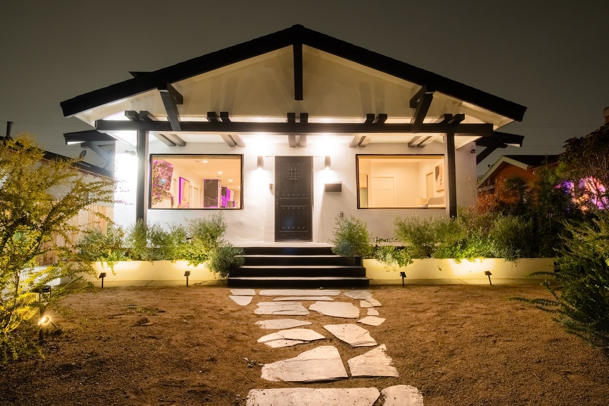 Serena casa grande recién amueblada+ refugio con jardín en el distrito artístico de Culver City. Alojamiento vacacional perfecto para familias pequeñas con configuración de oficina en casa. Camina hasta Jerry's Market, Destroyer, Bianca's Bakery, Platform, Ivy Station y Helms Bakery. 1 cama tamaño king y 1 cama completa con capacidad para un máximo de 4 adultos. Cama individual inflable también disponible bajo petición. a 6 millas de UCLA. Cerca de Apple, Warner, Amazon, Downtown Culver, tren ligero Expo, autopista I-10. ¡Pronto! Janis