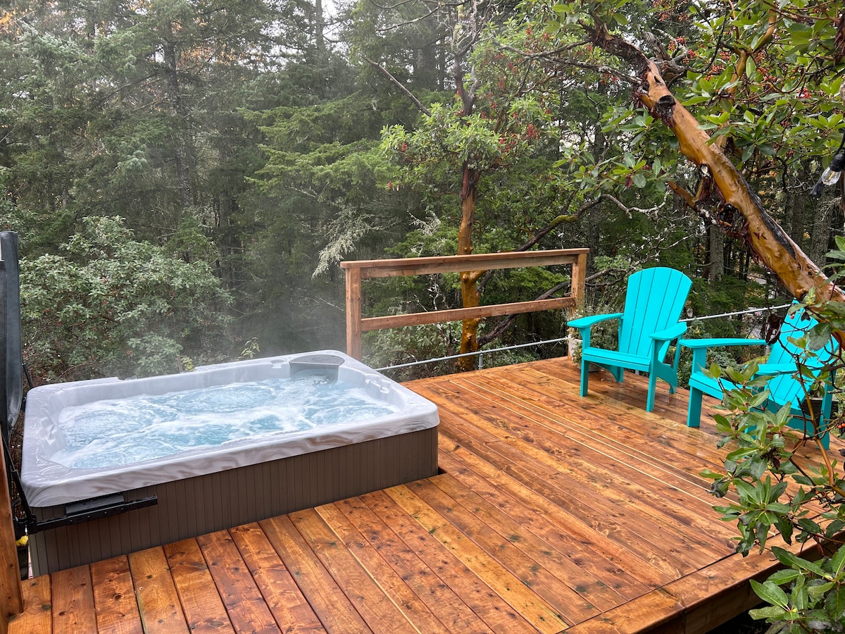 Ven a disfrutar de una escapada romántica con una bañera de hidromasaje PRIVADA para 3 personas y unas vistas preciosas. * FUEGO DE GAS con sofá y tumbonas. * ALBORNOCES Y TOALLAS DE SPA * Cocina TOTALMENTE equipada * Lavandería en la suite. * Cargador súper rápido para coches eléctricos. WALMART, SUPERSTORE y RESTAURANTES, todo a 5 minutos en coche * A 25 minutos en coche del centro de Victoria. Somos una familia de 4 profesionales que trabajan y que viven arriba. Escucharás pasos arriba, pero somos muy respetuosos cuando tenemos invitados. **NO SE PERMITEN FIESTAS ni otros huéspedes