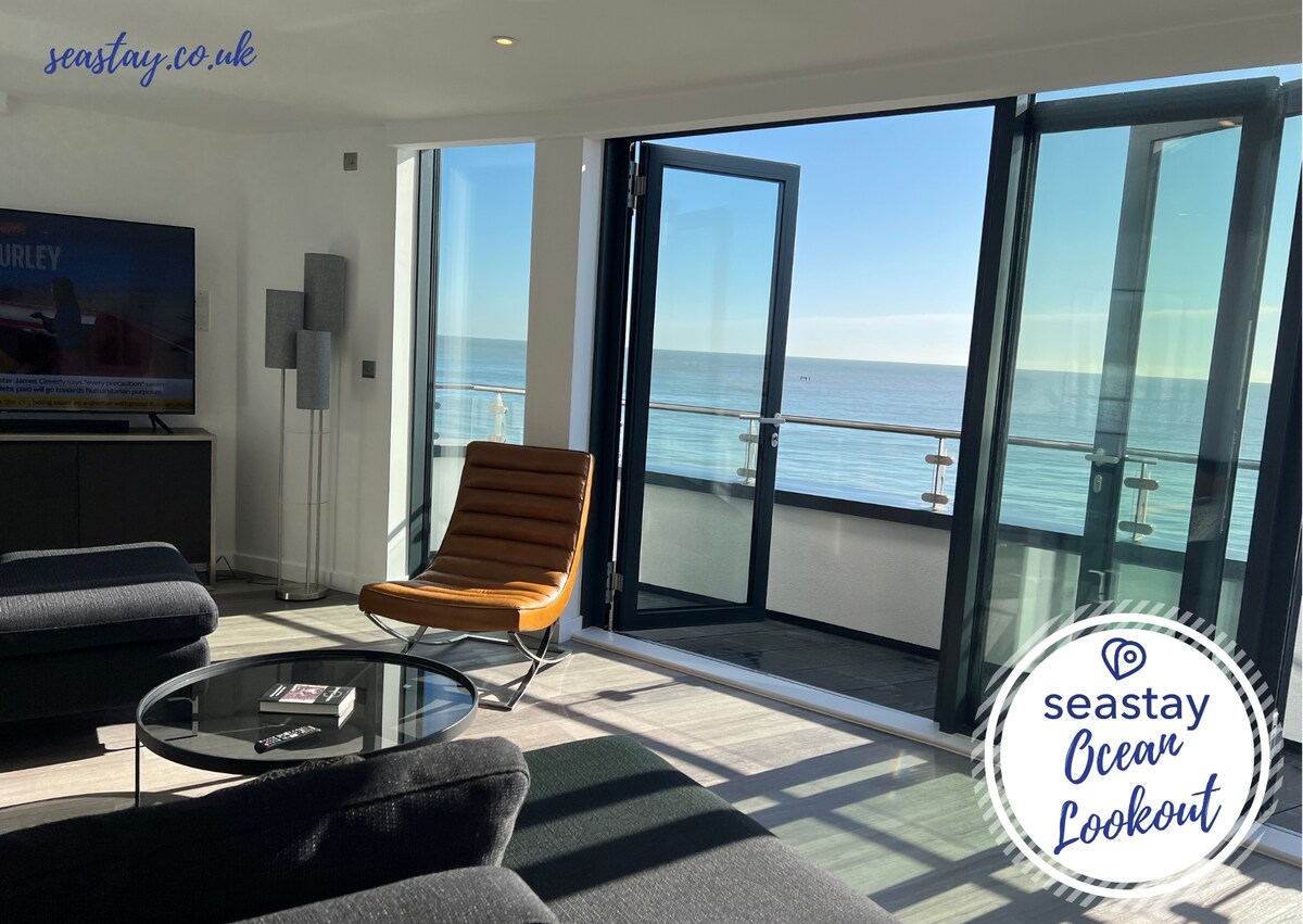 ***Winter warmer, low rates*** The Lookout is a stylish beachfront apartment, set in a period house on a central square in this charming town: * Complimentary late check-out 11am + no cleaning or service fees* - 3 luxurious bedrooms (1 x Superking, 2 x doubles), super-comfy mattresses and quality bedding - 2 bathrooms, one roll-top, one power shower - Fully equipped kitchen, dishwasher & washer/dryer - Stunning direct sea views - Fast WiFi - Babies, kids & dogs welcome - Free, easy prkng nearby