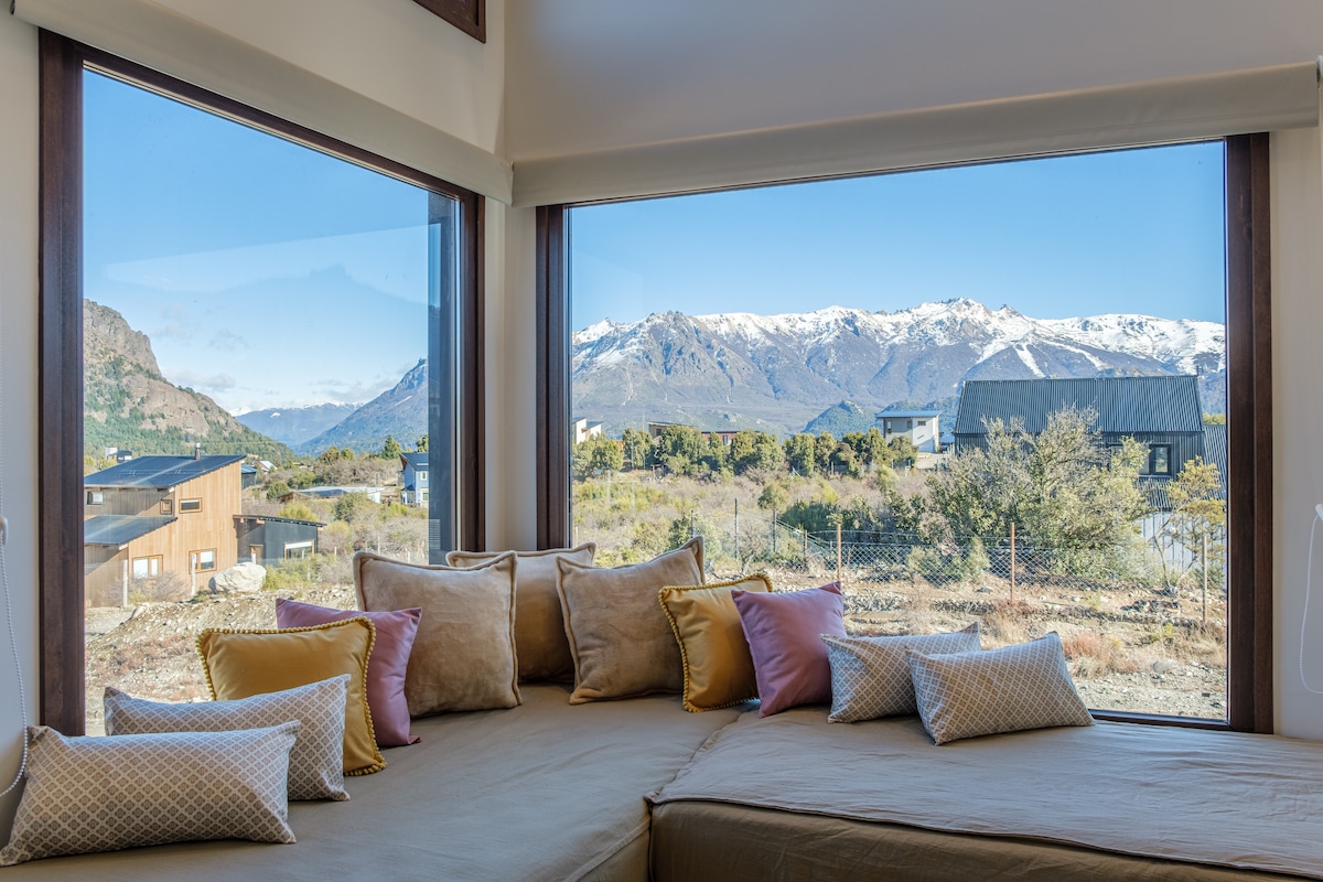 Inspirada en The Views, esta casa moderna de diseño arquitectónico único permite disfrutar de excelentes vistas desde todas las habitaciones. La casa está bien situada en el Club de Campo Arelauquen, cerca de la puerta del Lago Gutiérrez. Es ideal para el entretenimiento con bodega, vestidor y una gran habitación que incluye sala de estar, comedor y cocina gourmet. Cuatro dormitorios en suite, incluidos dos dormitorios principales. Y 6 baños. Cuatro camas adicionales en la sala de estar con cocina americana. Esta casa de montaña única y supermoderna puede alojar a 12 huéspedes.