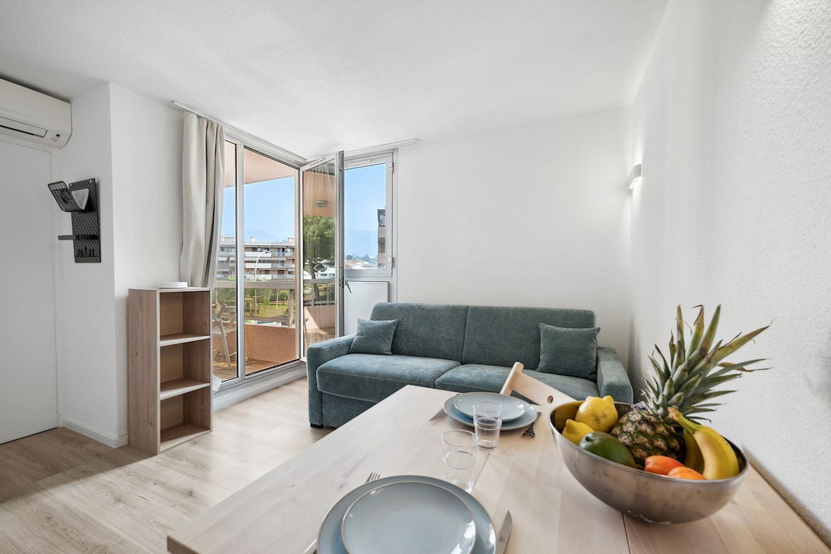 ¡Bienvenido a nuestra casa! Apartamento y terraza con vistas al mar, orientado al sur tranquilo. Acceso por escaleras desde la carretera. Dispondrá de una cama doble, TV inteligente, aire acondicionado reversible, wifi. Se proporcionan sábanas y toallas. La cocina está totalmente equipada (LL, LV, horno, MO, cafetera Nespresso, hervidor de agua, tostadora, aceite, vinagre, sal, pimienta). Frente a ti, el Mediterráneo y su ballet de yates, el cielo y su espectáculo de parapente. La tranquilidad le espera. ¡Nos vemos!