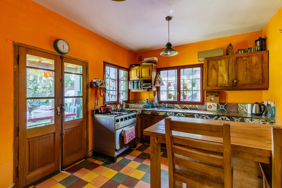Casi sobre el río ;) Casa cómoda y de lo más encantadora, utilizando recursos del lugar y de varios otros lados. Siempre en sintonía con el Delta. Ideal para 4 personas. De muy fácil acceso, a menos de 30min de la Estación Fluvial Tigre de lancha pública o taxi. Cuenta con todos los elementos necesarios para pasarla bárbaro: amplio jardín, muelle propio, parrilla, blanqueria, vajilla, juegos de mesa y exterior, elementos de cocina, hogar a leña, kayak y varias Proveedurias. Eventos no!