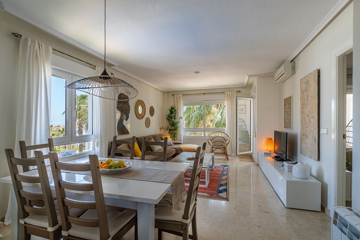 Está a 15 minutos a pie. Hay dos dormitorios para invitados. El salón tiene un sofá cama. La cocina está totalmente equipada. Hay internet y televisión disponibles. Hay ducha y barbacoa en la terraza superior, privada solo para el apartamento. El complejo cuenta con dos piscinas. El centro comercial más grande, Zenia Boulevard, con sus 150 tiendas y numerosos restaurantes, está a solo 300 metros de su casa de vacaciones.