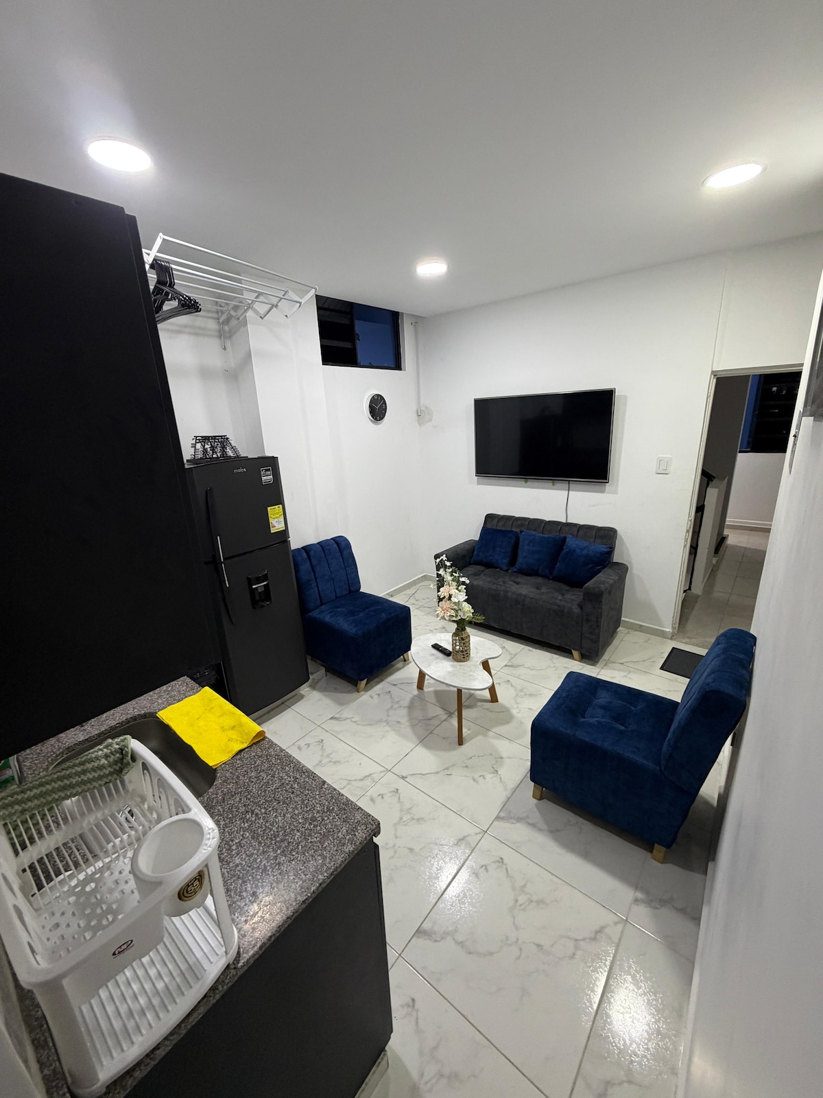 Parqueadero para moto 🛵disponible en la misma propiedad. A una cuadra hay parqueadero público para vehículos. Disfruta de un apartamento cómodo y funcional, ideal para parejas, familias pequeñas o viajeros de trabajo. Cuenta con 1 habitación cama queen, baño privado, cocina equipada, un agradable sofa cama para descansar y comedor para compartir. Tiene terraza, perfecta para tomar un café, leer o relajarte al final del día.