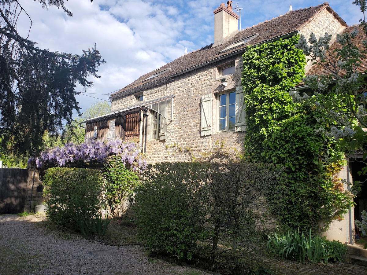 Mi casa es el lugar ideal para descansar y disfrutar de la Borgoña histórica. Ubicada en un campo verde y tranquilo, esta casa de huéspedes independiente tiene un dormitorio, un baño, una gran cocina en la planta baja y un segundo dormitorio y una sala de juegos en la planta superior. La cocina es muy grande, puse 2 sillones para que puedas disfrutar del fuego o ver la televisión. Mi casa también es perfecta si estás en un viaje profesional por la zona.