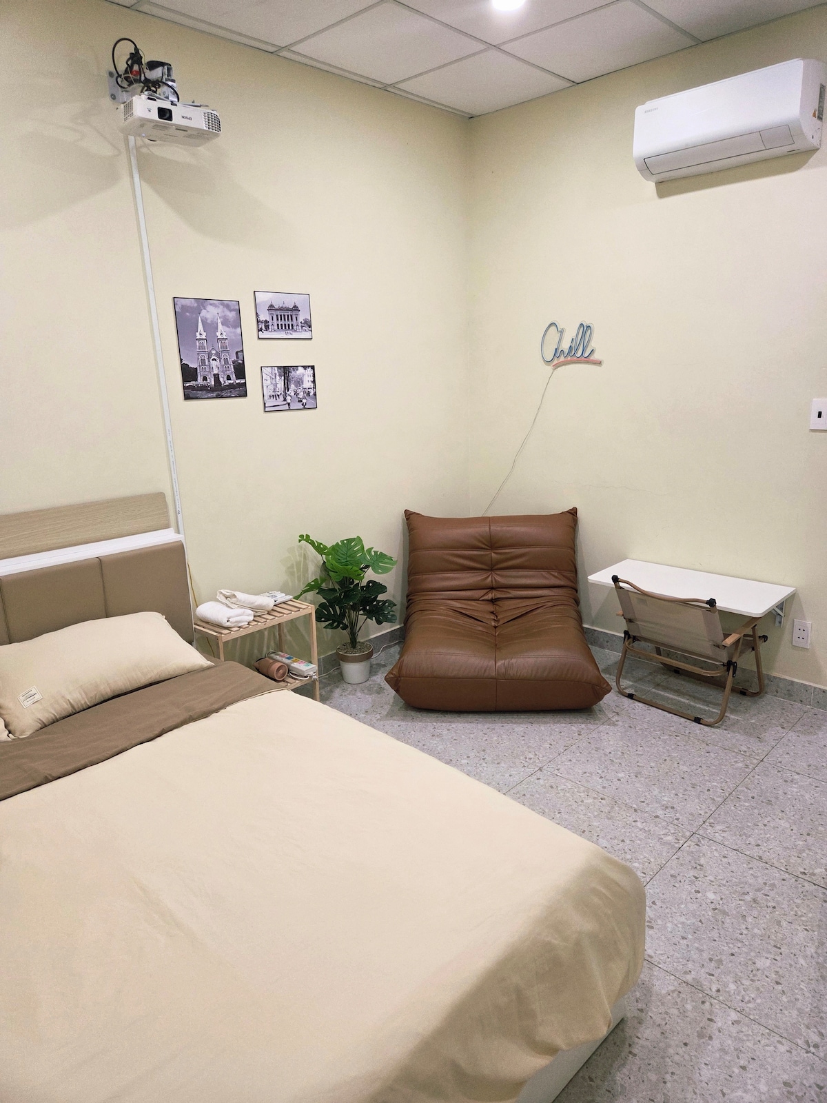 Enjoy ultimate convenience when you stay at this centrally located spot. - 12 minutes by car from TSN Airport/D1 - An airy room with large windows, ensuring a clean and refreshing atmosphere. - The room is fully equipped with modern amenities: air condition, projector, Wi-Fi, refrigerator, essential utensils... - Surrounded by many coffee shops, local restaurants, nails and hair salons... After a day of exploring the city, unwind with a cup of tea on the rooftop and enjoy the city night breeze.