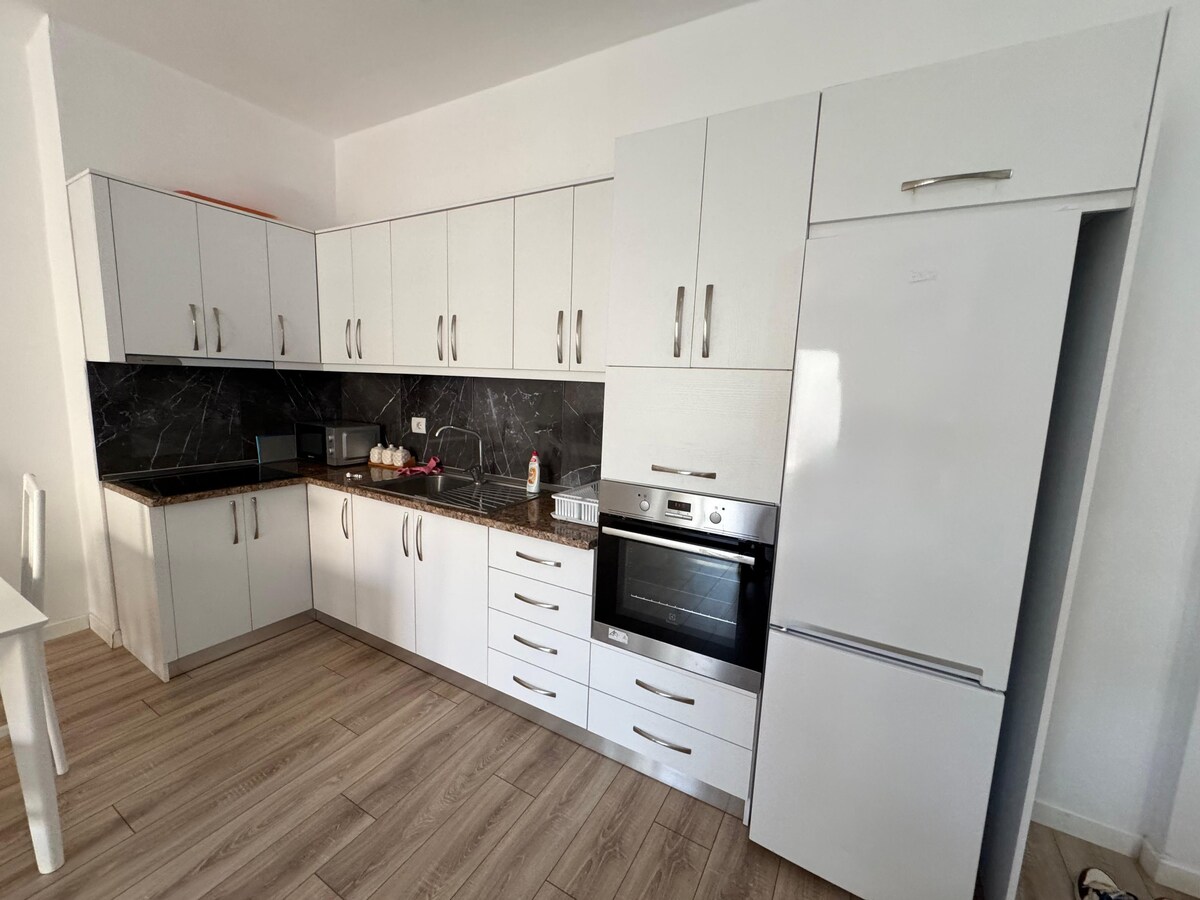 El apartamento es nuevo y está situado en el centro de Vlora, a cinco minutos a pie de la calle principal. En la calle principal puedes encontrar varias tiendas, cafeterías, restaurantes y supermercados. Aunque está situado en el centro de la ciudad, el apartamento es soleado, acogedor y tranquilo. Además, puedes encontrar playas públicas y privadas a 10 minutos a pie.