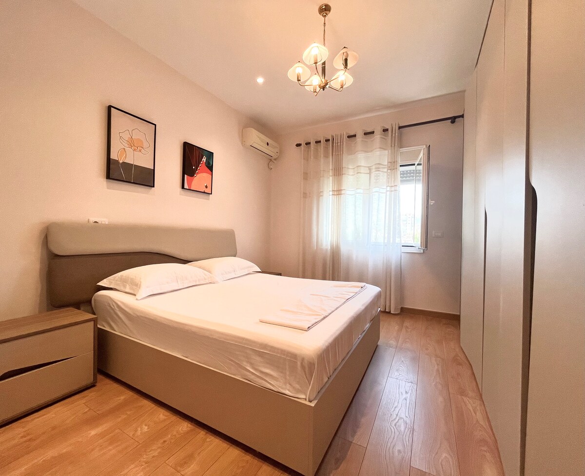 Bienvenido a Estelviano Sea View Escape, un moderno refugio costero en el corazón de Vlore. Perfecto para parejas, viajeros solitarios o huéspedes de negocios que buscan una elegante escapada costera. ✔️ Increíbles vistas al mar Interiores ✔️ elegantes con detalles en madera natural Ambiente ✔️ tranquilo para una verdadera relajación A solo 5 minutos de la playa, los restaurantes y las tiendas, tu escapada perfecta comienza aquí.