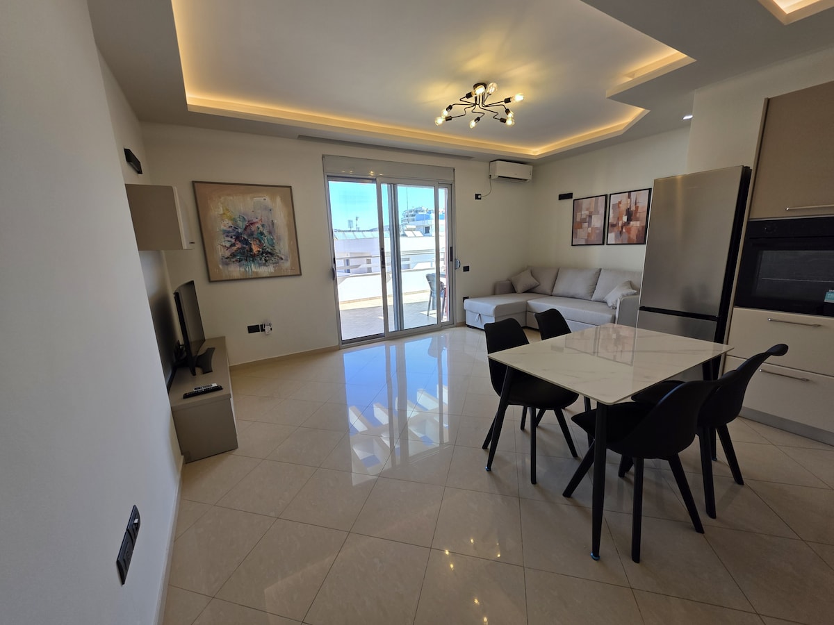 Situado en la sexta planta de un nuevo edificio en Lungomare Vlora, el apartamento cuenta con 1 dormitorio, 1 baño, una elegante cocina colorida (sala de estar) La cocina está equipada con electrodomésticos modernos. El apartamento está a 1 minuto del mar. ¡Delante del edificio hay estacionamiento en la calle!Navegar por los alrededores es fácil, ¡ofrece varias opciones de transporte,lo que permite explorar las atracciones cercanas a pie!Los autobuses locales operan rutas y horarios fijos, con una parada de autobús a solo 5 minutos a pie del apartamento.