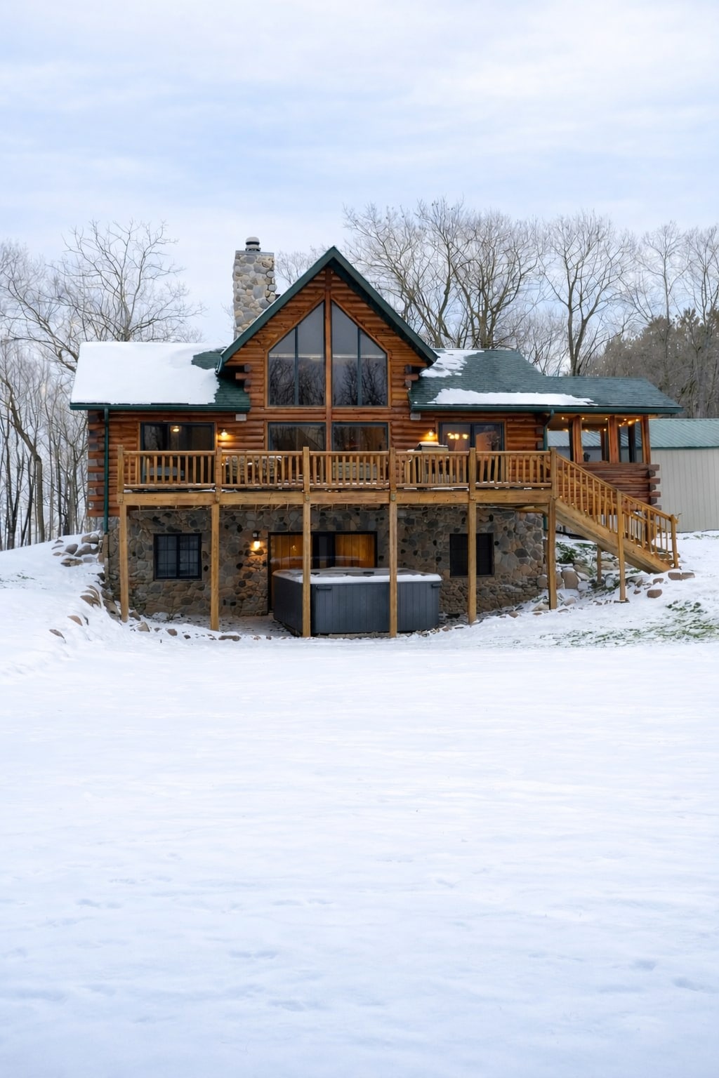 Relájate con tu familia en el lago y sube al muelle. Una verdadera casa de madera, construida recientemente con excelentes comodidades: ¡sala de juegos climatizada y horno de pizza al aire libre para noches acogedoras! Con 10 camas y 16 plazas para dormir, esta propiedad puede alojar a toda tu familia. Disfruta de la bañera de hidromasaje, el jacuzzi en el baño principal o prueba la gran ducha con múltiples chorros y ducha de efecto lluvia. Sala de cine con televisor inteligente de 82" y asientos reclinables eléctricos. ¡A poco más de una hora de las ciudades gemelas!