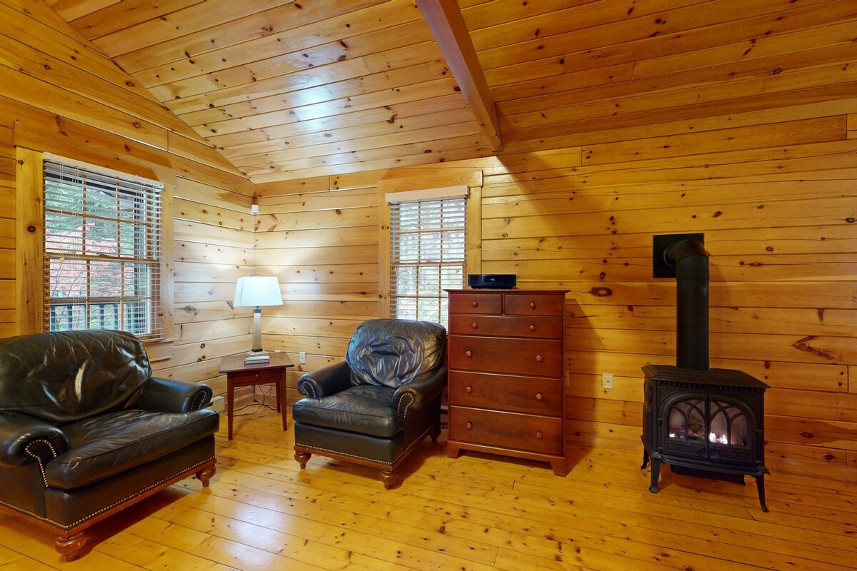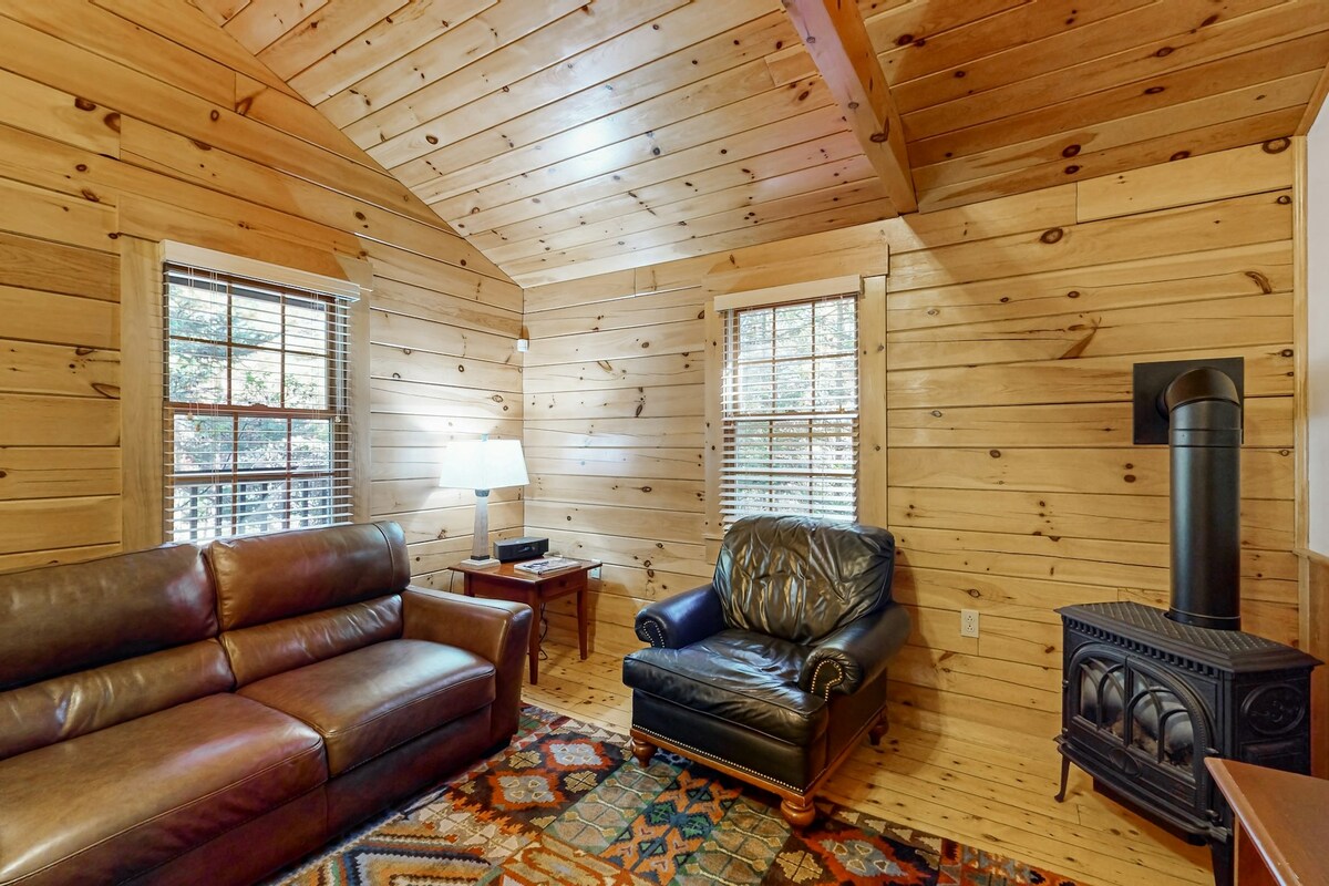 Cabaña tipo estudio con chimenea, cocina americana y aire acondicionado