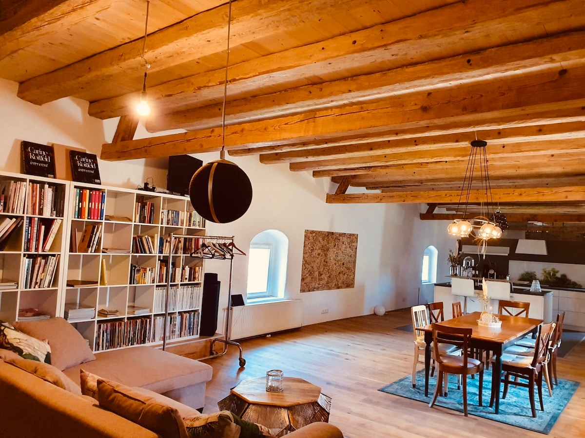 Dingelberghof ofrece tranquilidad y relajación, donde los ciervos a menudo deambulan por el jardín abierto. A pesar del entorno tranquilo, está a solo una hora de la estación central de Viena, con buenas conexiones ferroviarias y por carretera. La suite de invitados de 130 metros cuadrados tiene un patio romántico a un lado y un jardín privado con sauna y ducha al otro. Las paredes del siglo XVI, con techos abovedados en la cocina y el baño, crean un ambiente único.