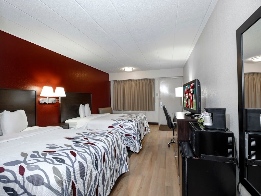 Habitación con dos camas queen en el Traveler's Rest Hotel